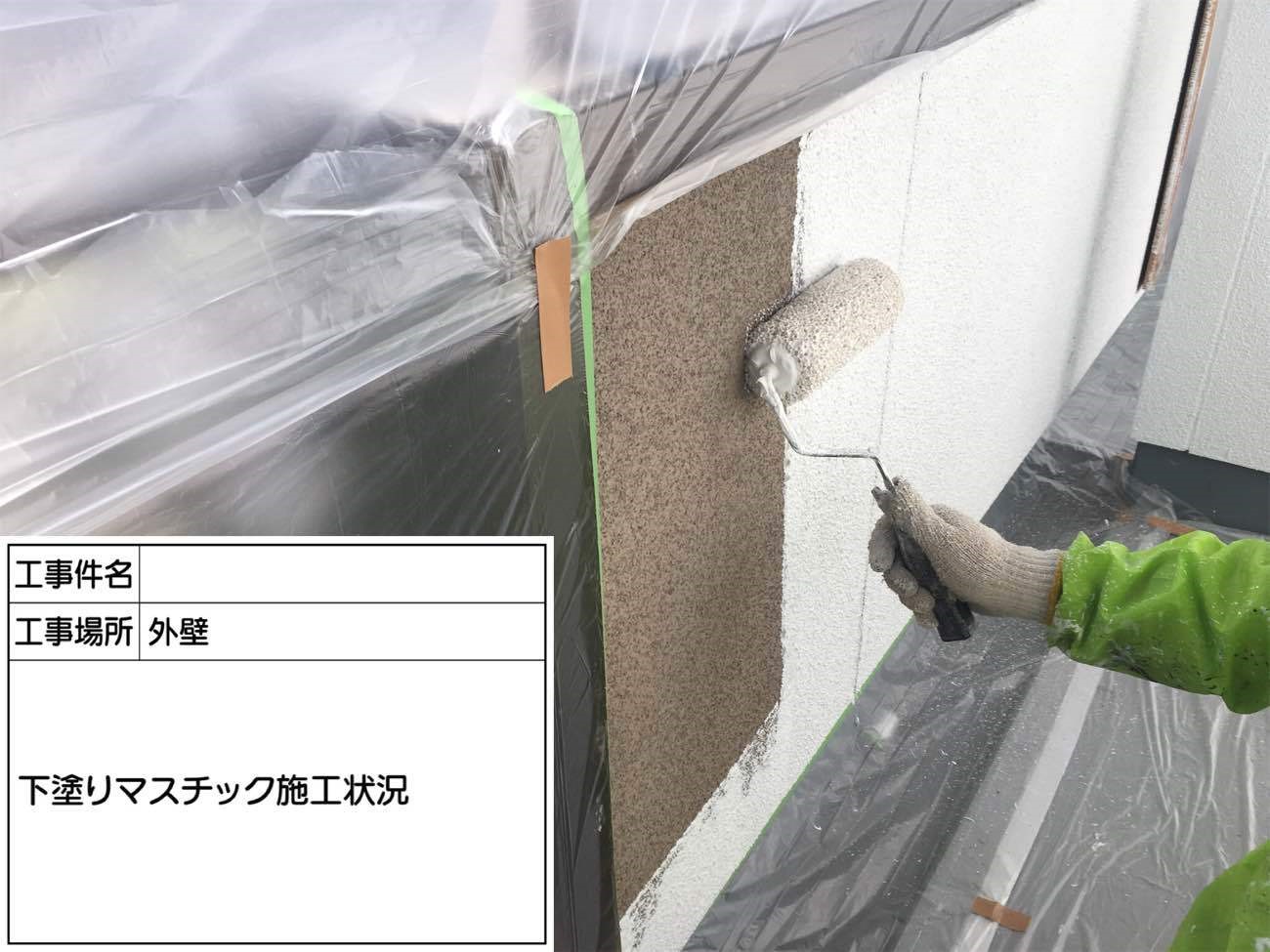 マスチック施工とは多孔質のローラーで塗装を行い凹凸状に塗装していく手法です。