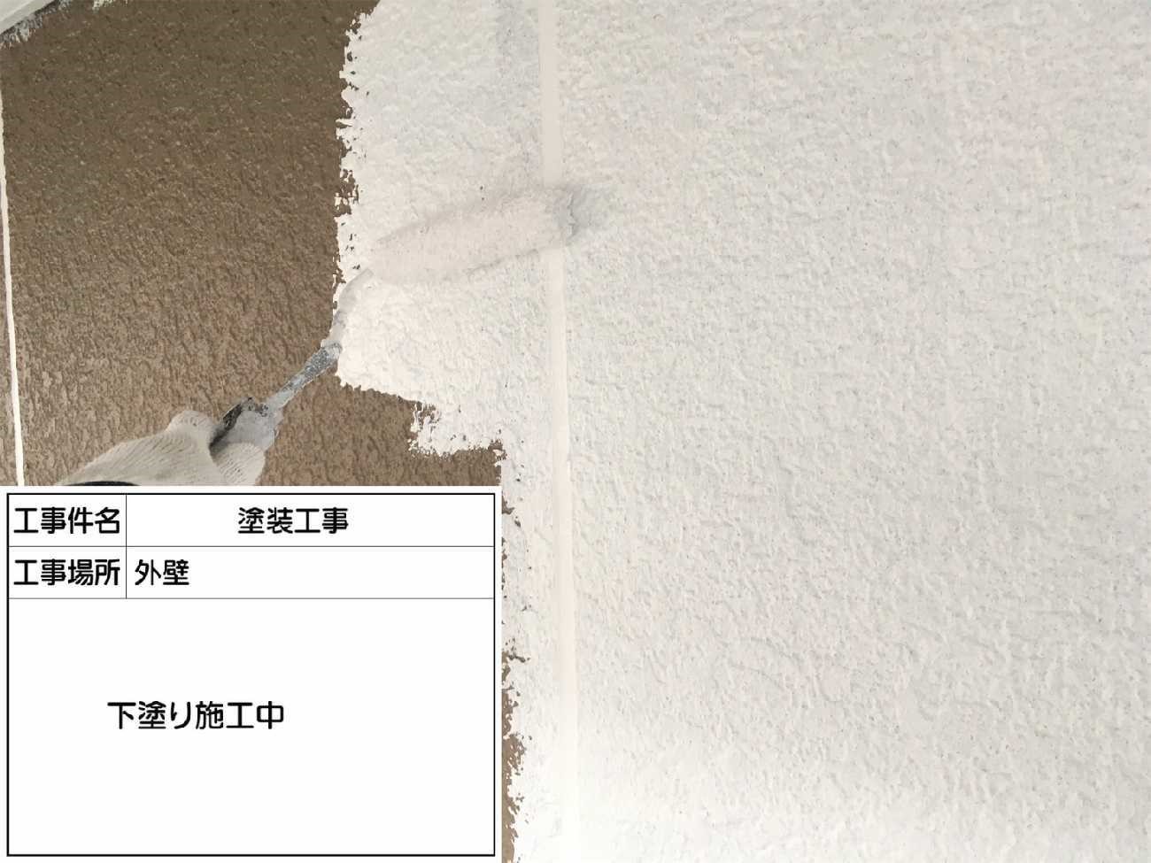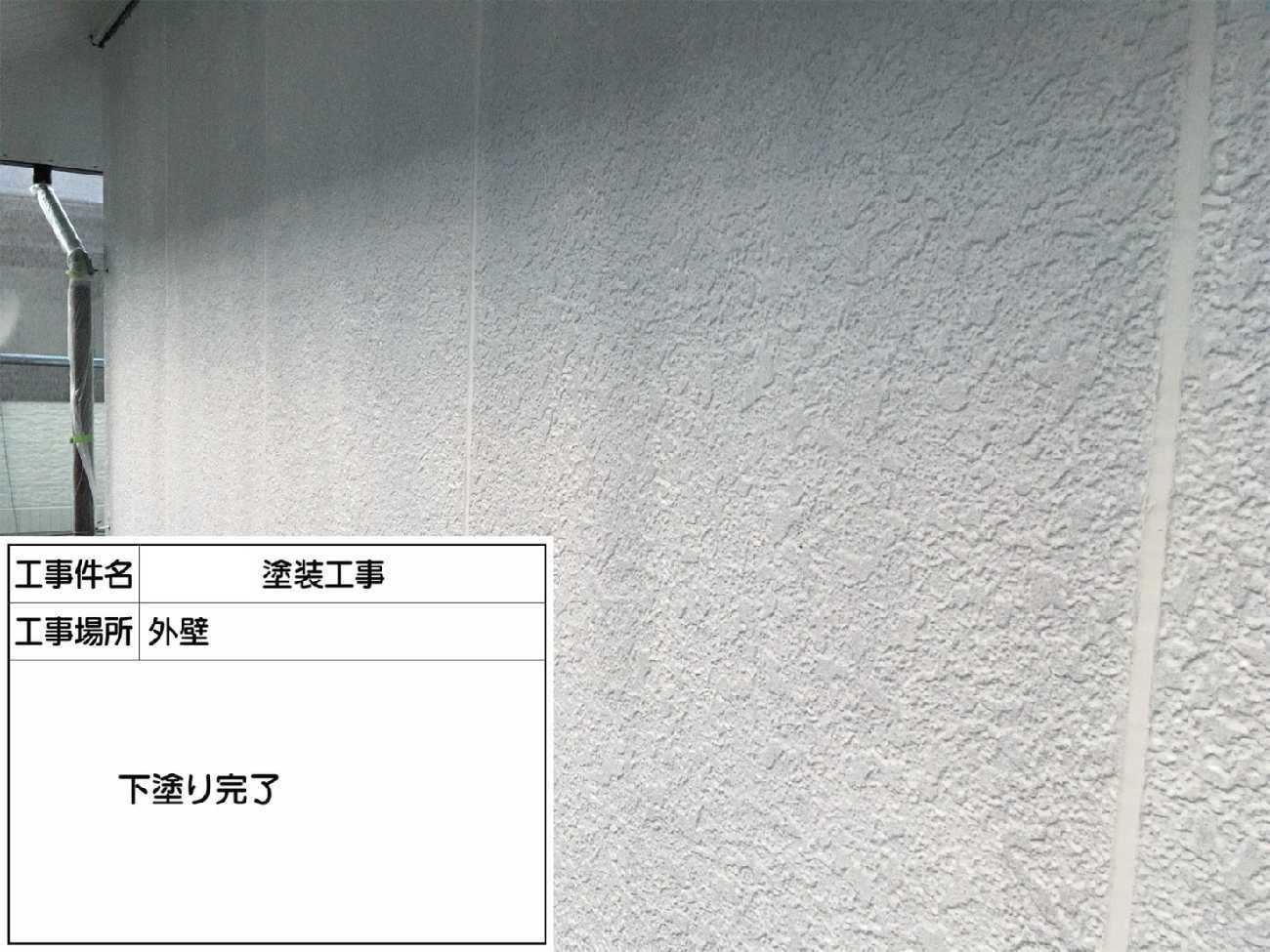 下塗り作業完了です。この工程で手を抜くと塗膜が剥がれる原因となりますので注意が必要です。