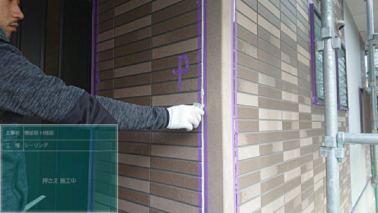 シーリングを入れたら、目地に均一に入るよう抑え作業を行います。