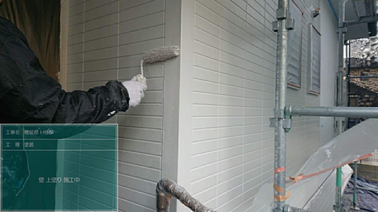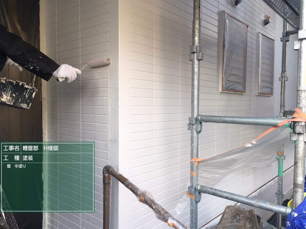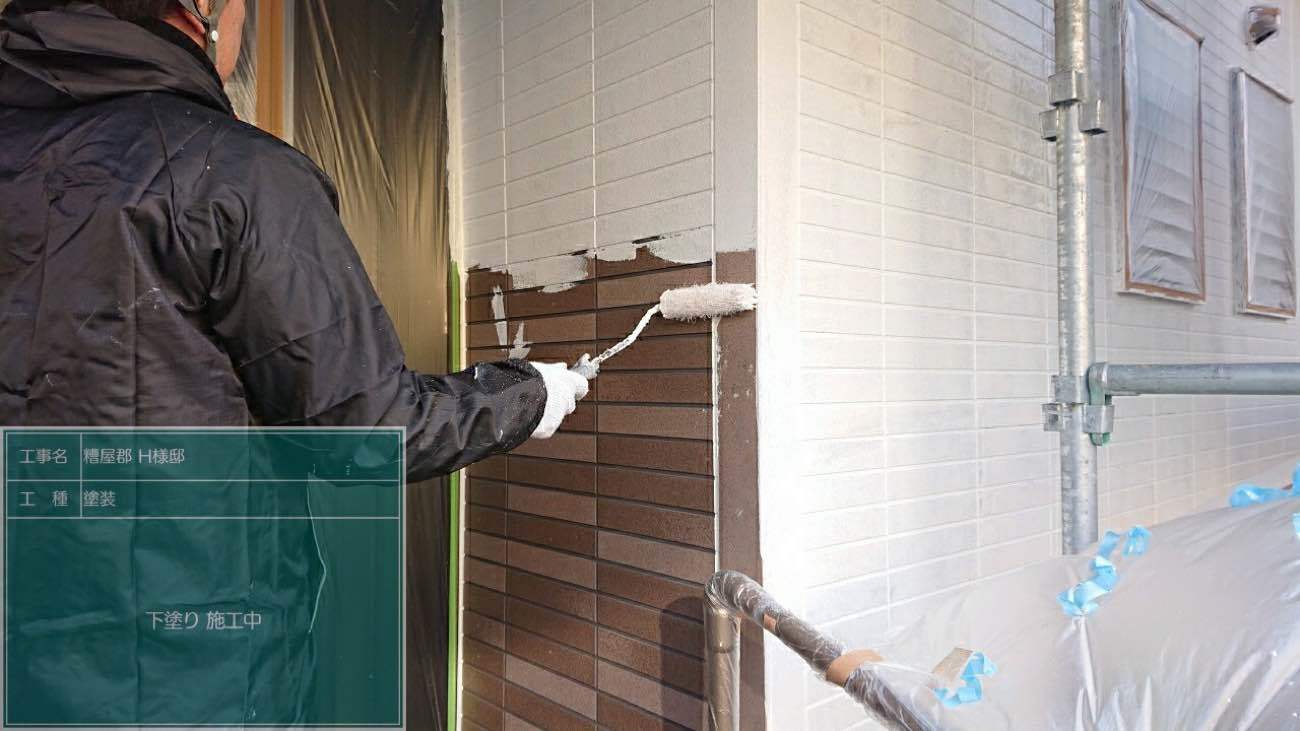下塗りが終わり乾燥させた後は、中塗り作業を行っています。