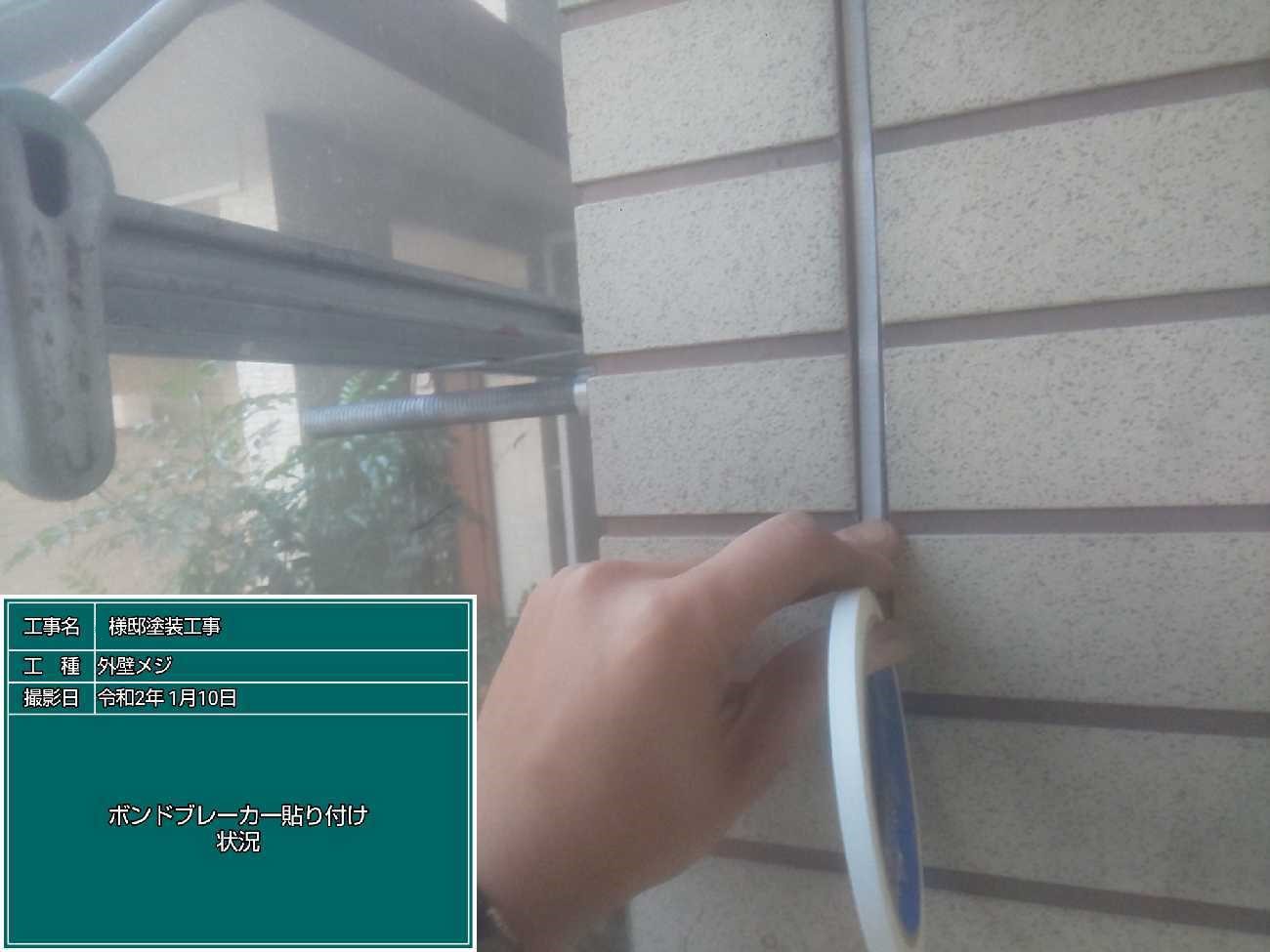 目地に新しいシーリングを充填する前にボンドブレーカーというテープを底に貼ります。