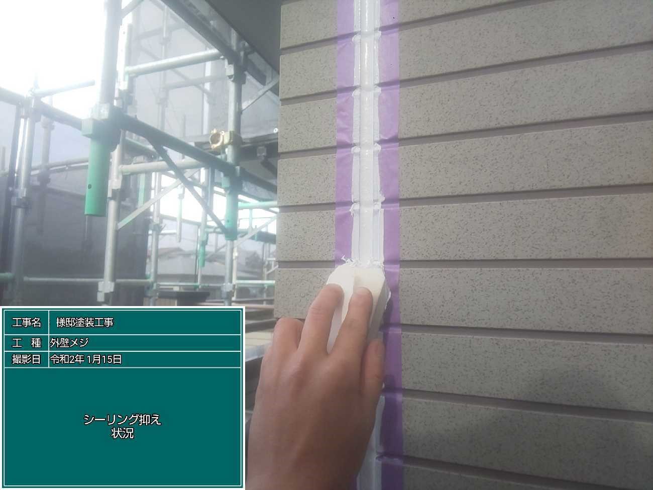 目地に充填したら均一に入るよう上から押さえ作業を行います。