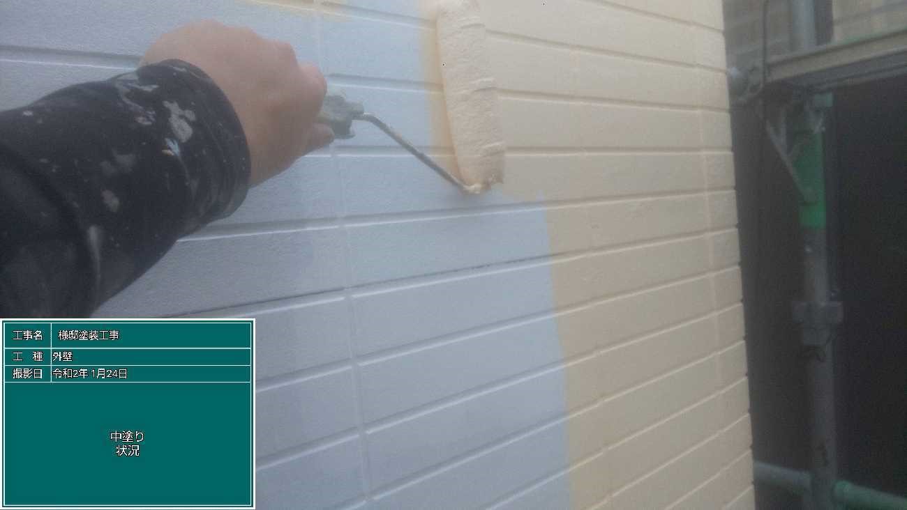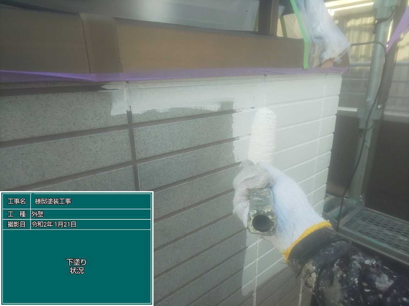 これは下塗り作業の様子です。下塗りで下地と塗料の密着性を高めます。