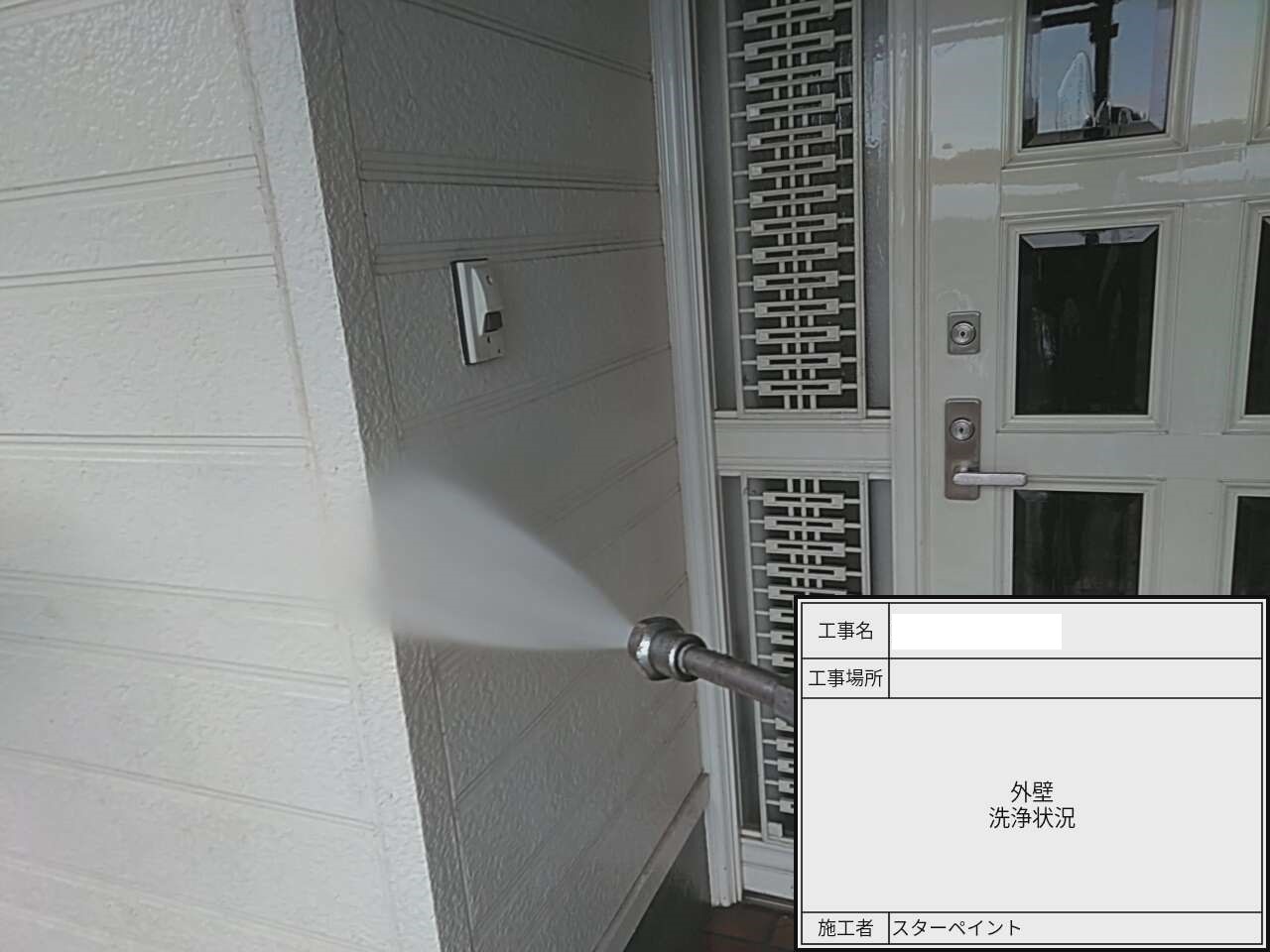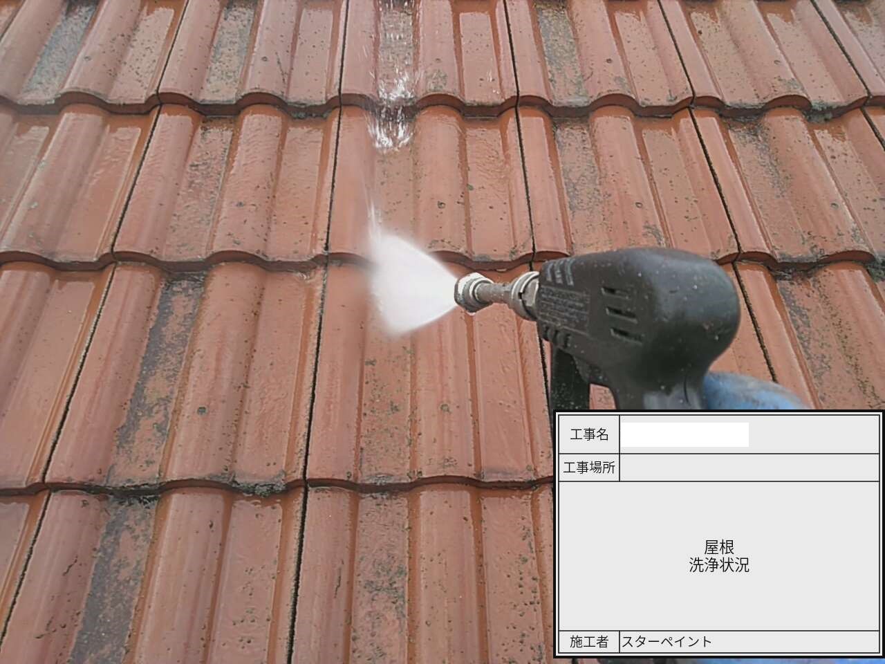 洗浄作業を行います。屋根と外壁の洗浄作業の様子です。