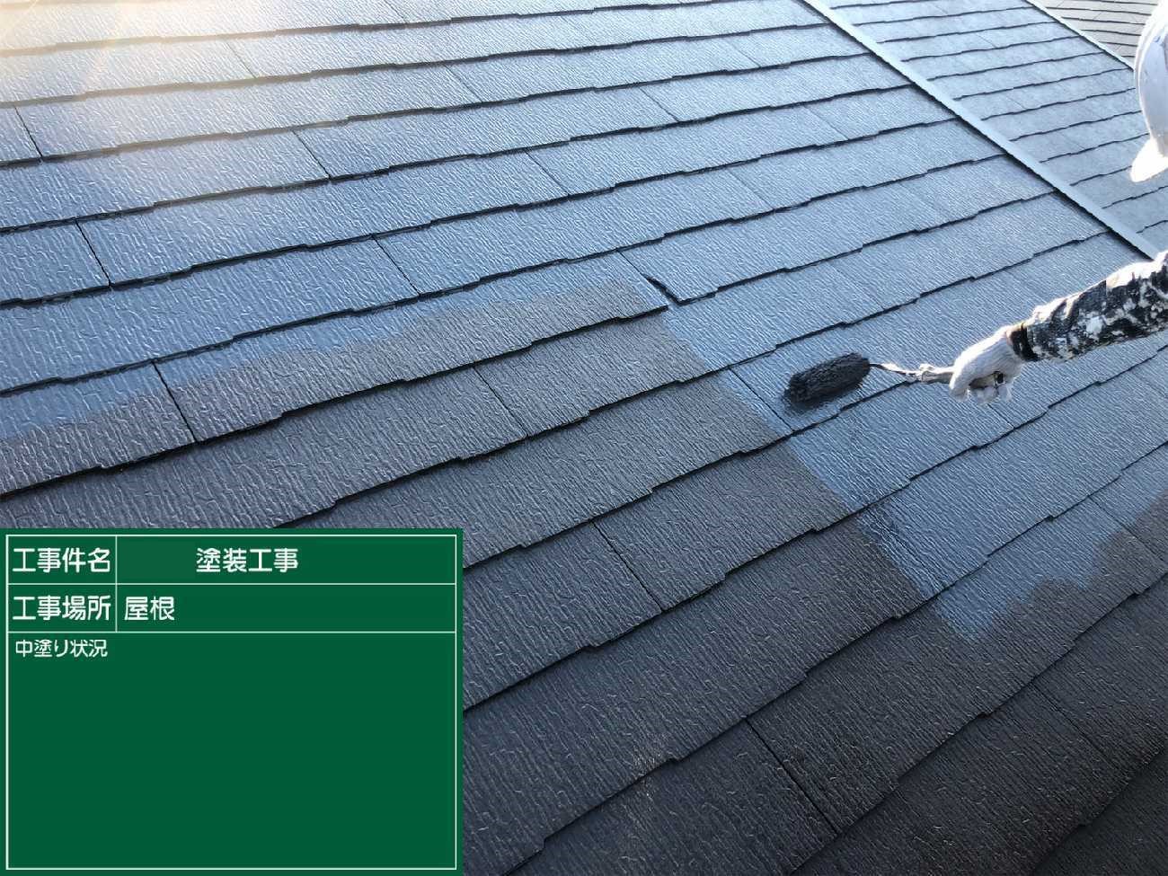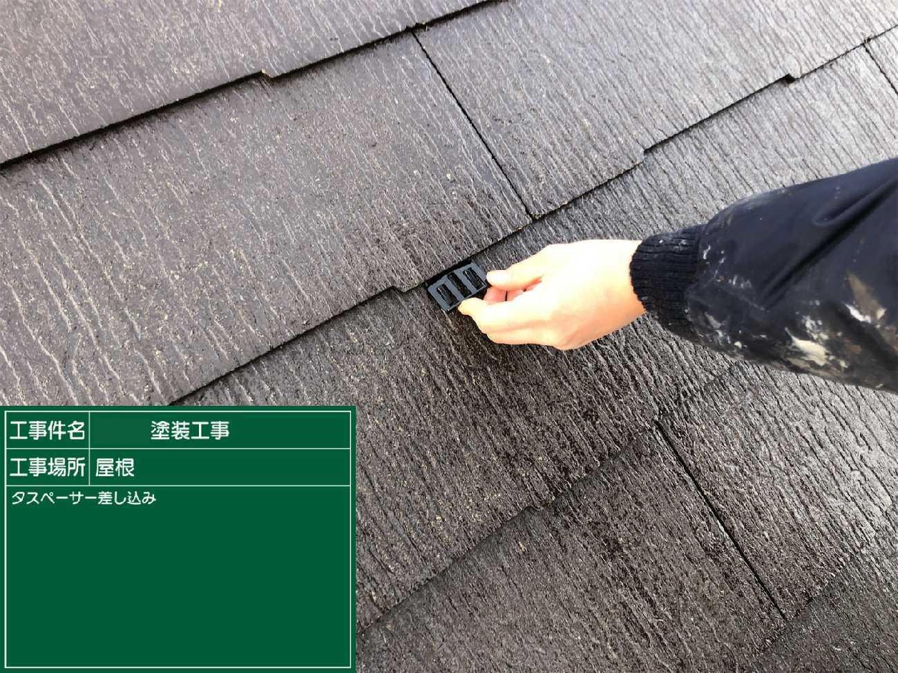 これはタスペーサーを取り付け、屋根と屋根の重なりに塗膜ができないように工夫しています。