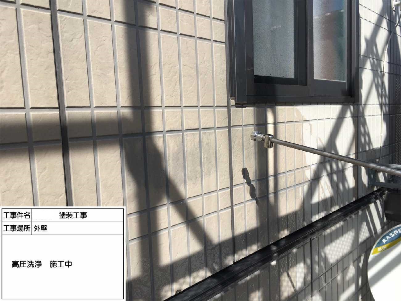 外壁の高圧洗浄作業です。 綺麗に塗装を行うためにここで洗浄作業を行います。