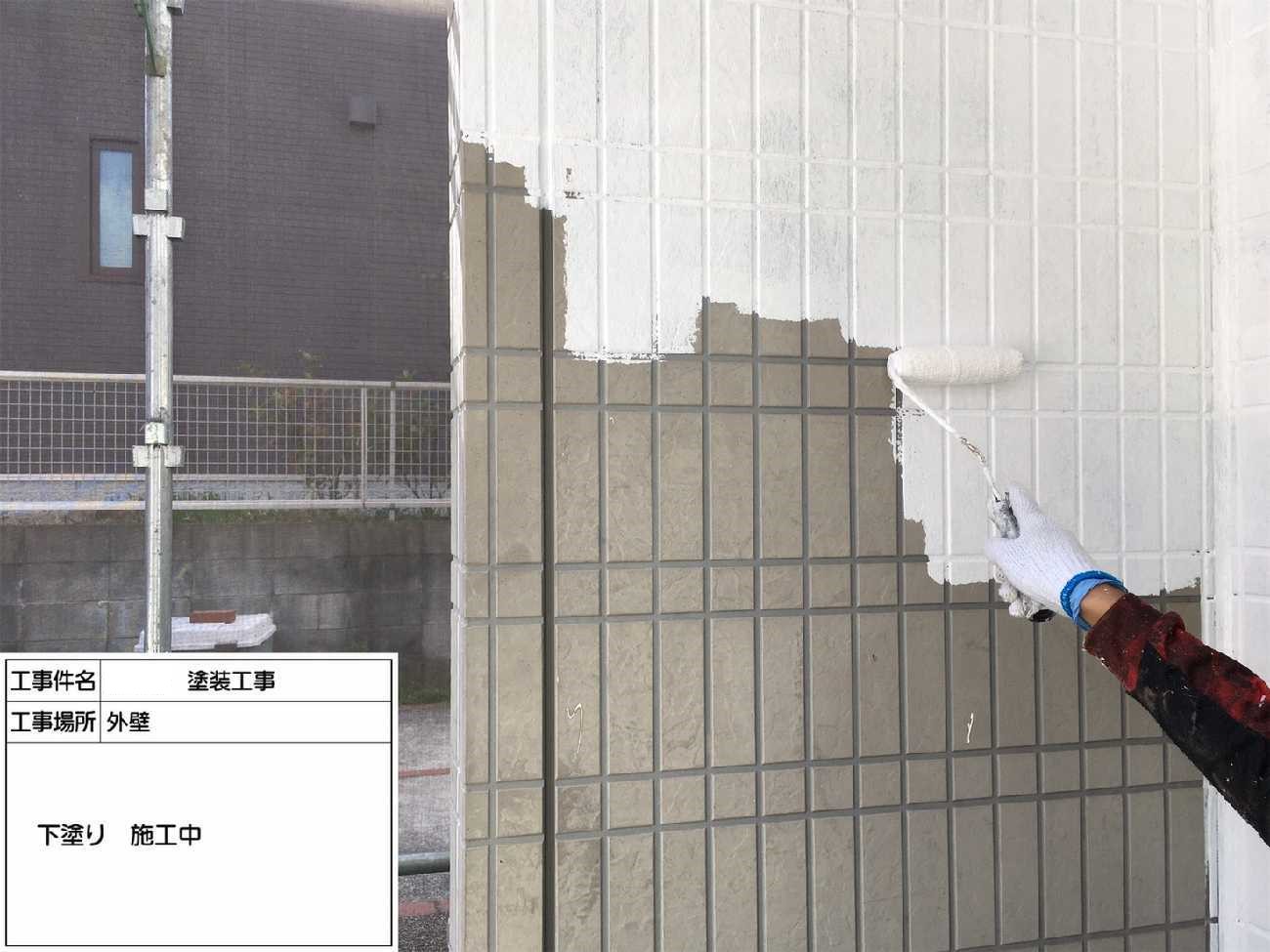 洗浄し乾燥したら、塗装作業を行っていきます。 下塗りでは、下地と塗料の密着性を高めます。