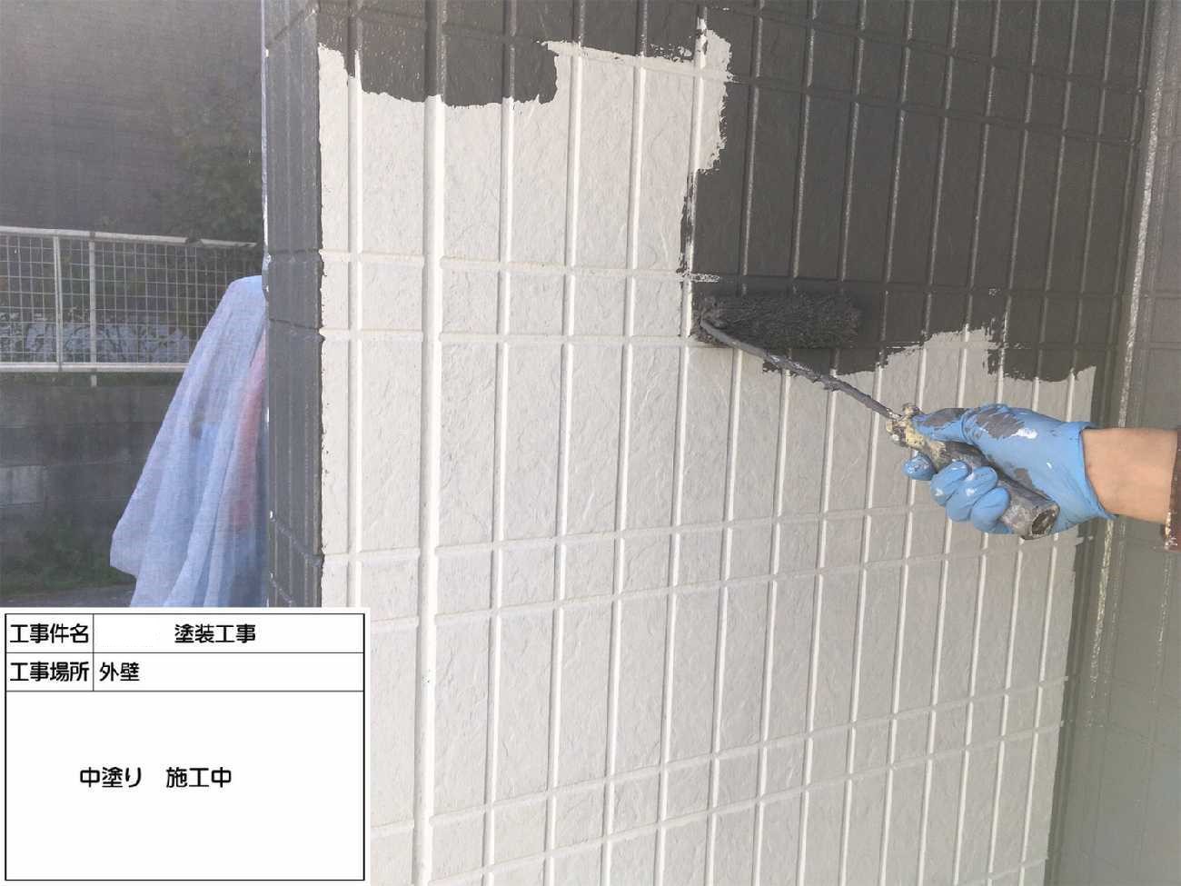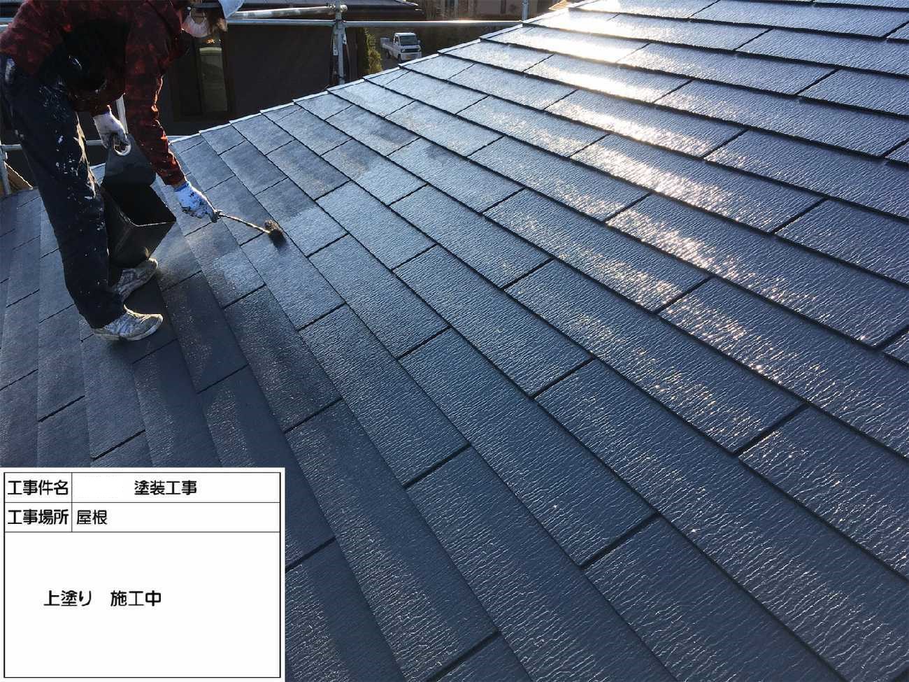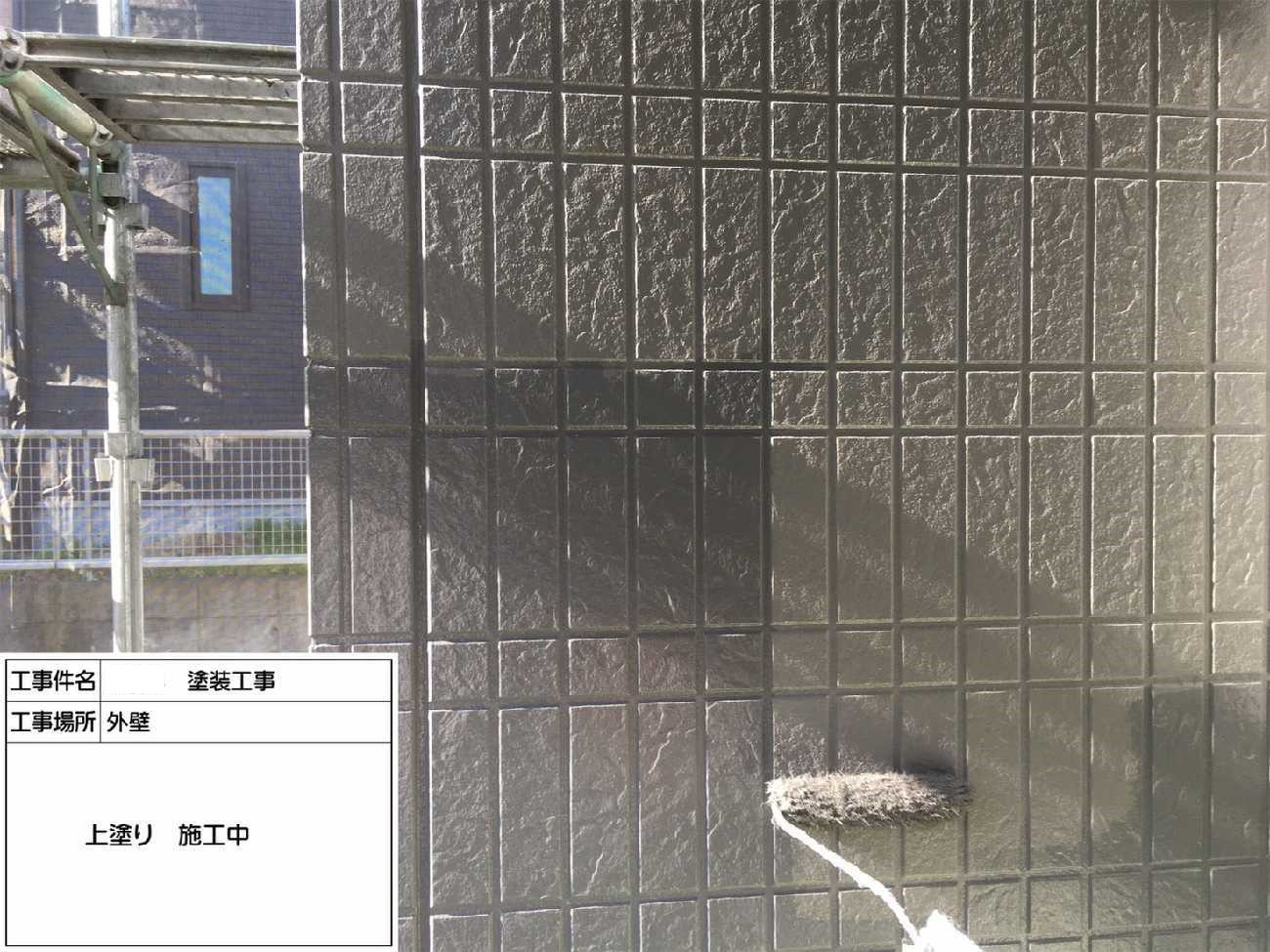 最後に上塗り作業です。 上塗りで綺麗に仕上げていくのと、さらに中塗りに加え下地を紫外線から届きにくく厚みをだしをします。