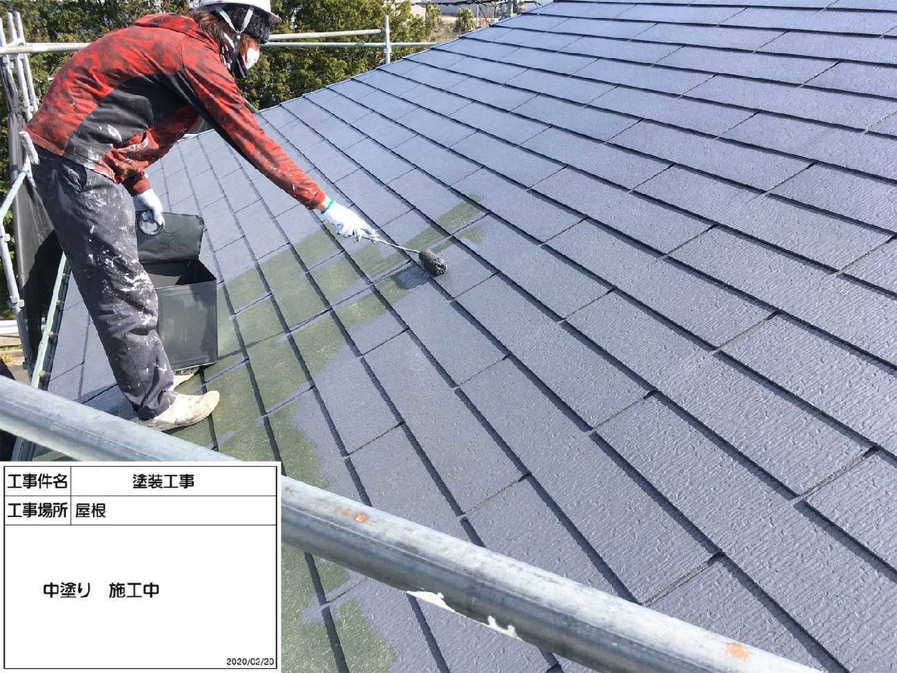 下塗りが終わって乾燥までしっかりさせたら中塗りをします。 写真で見てわかる通り、屋根も劣化し色あせなどを起こしてしまいます。