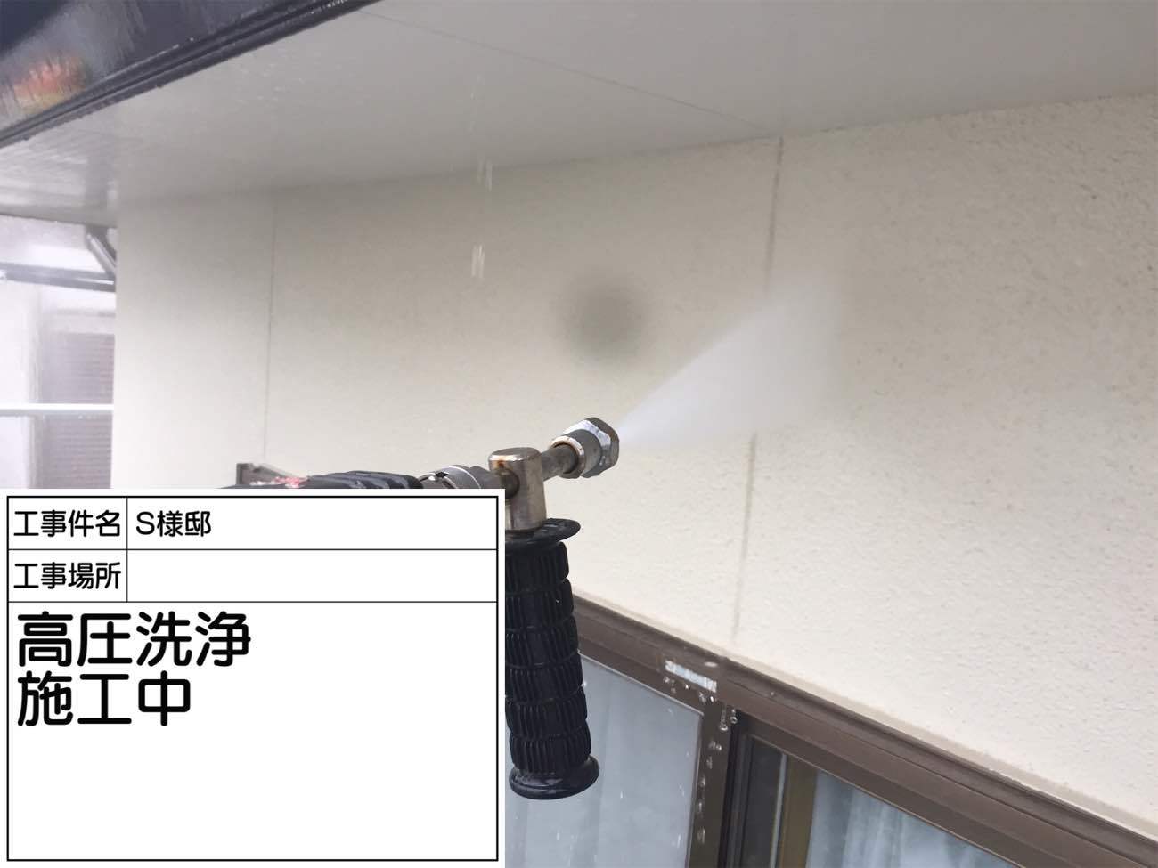 高圧のお水で外壁の汚れを徹底的に洗い流します。