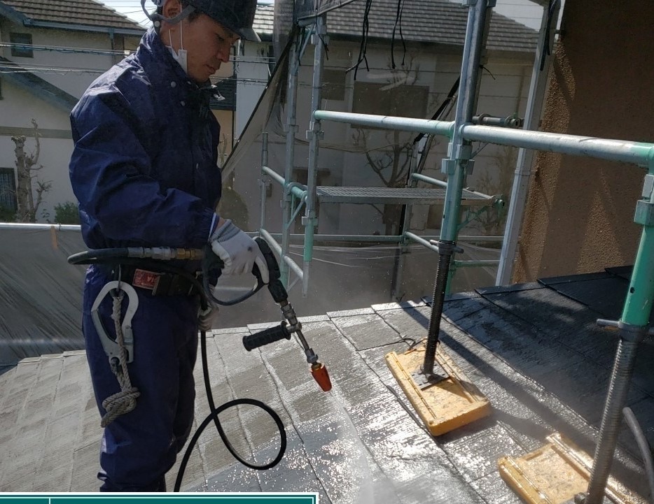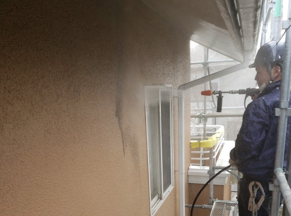 汚れが付着したままになっていると、塗料が下地につきにくいためしっかり洗浄していきます。