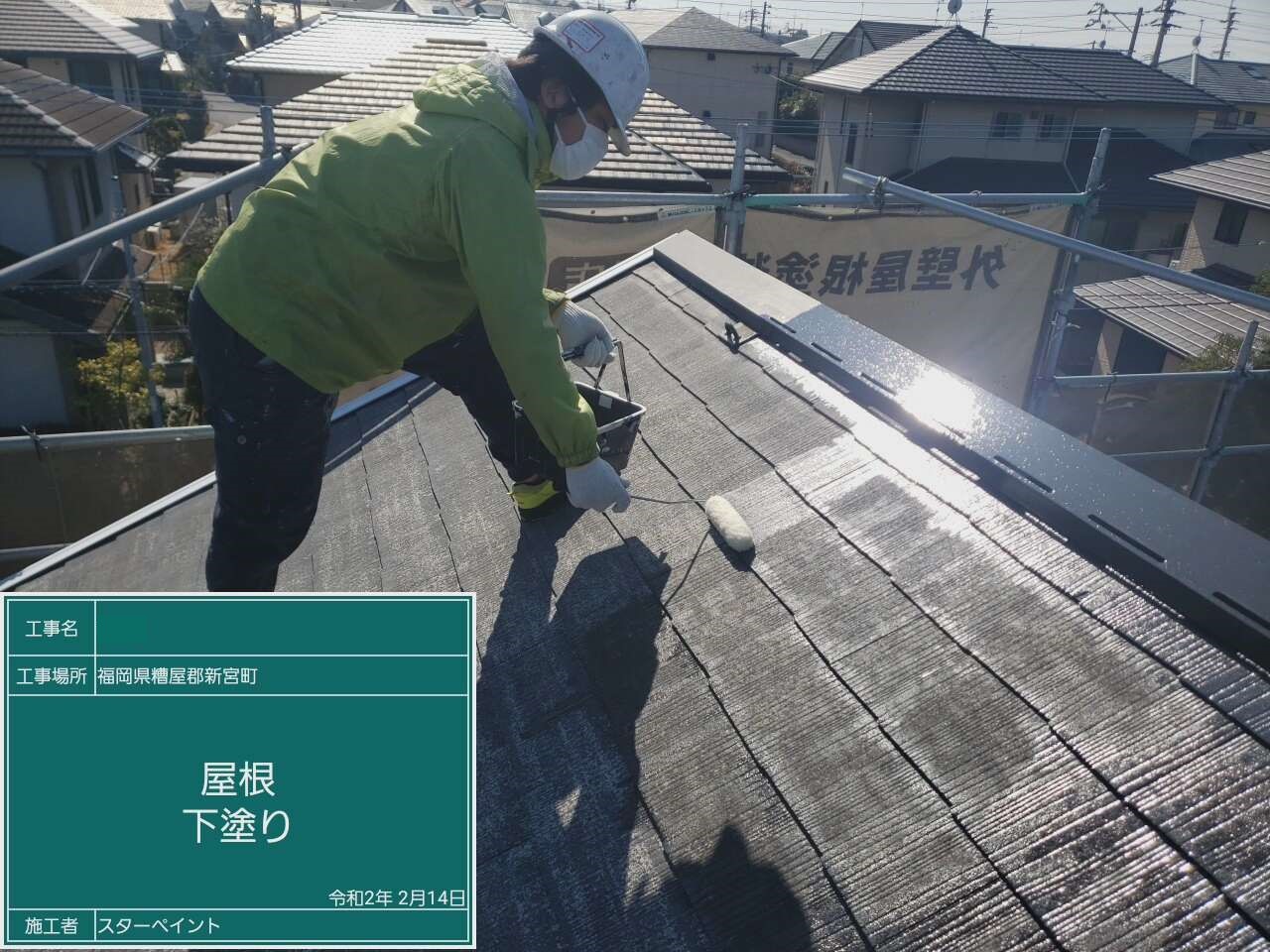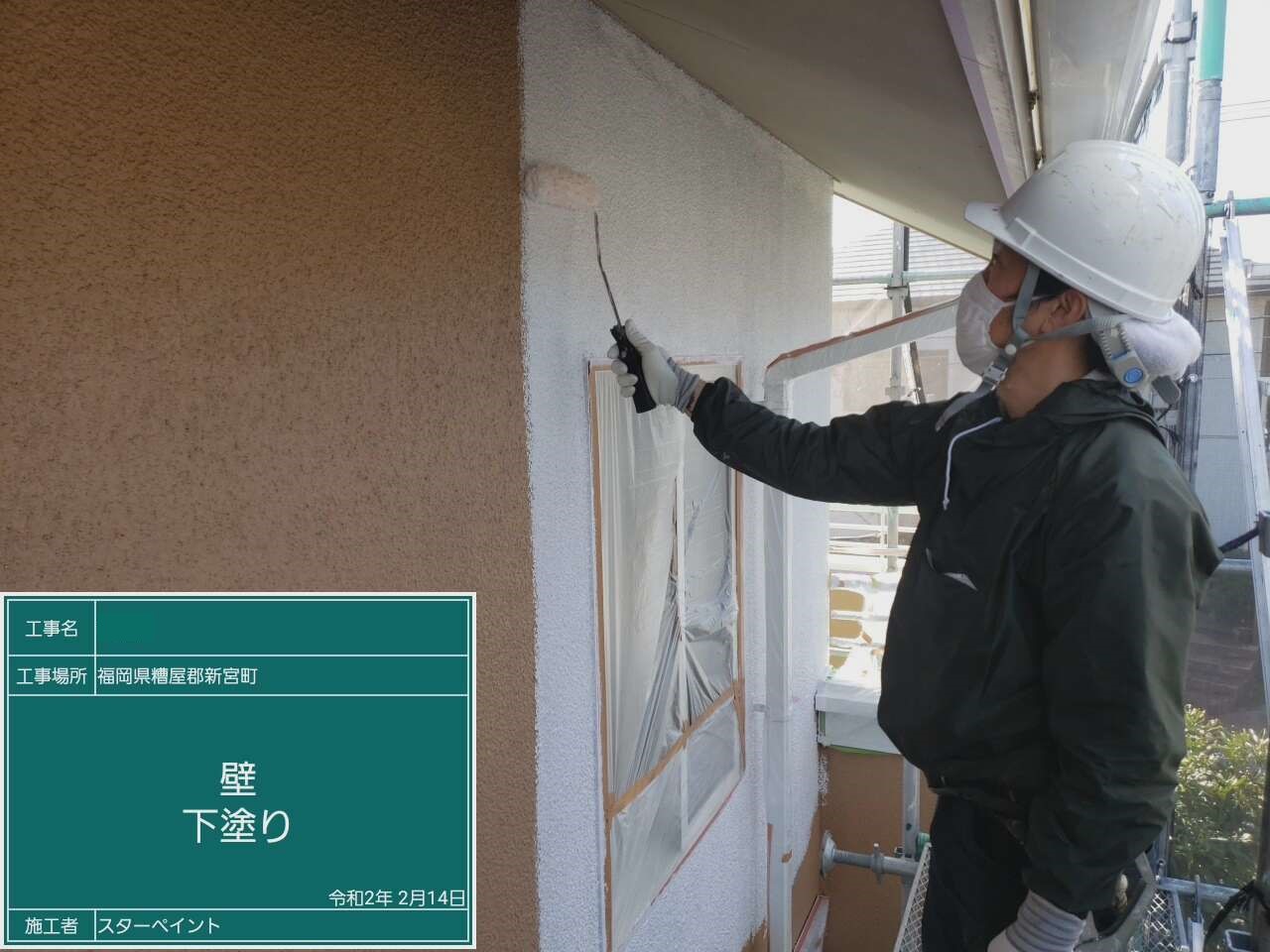 まずは下塗り。下塗りで下地と塗料を密着作用を高めます。
