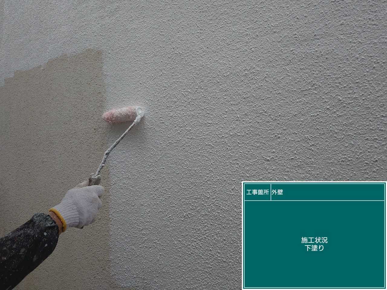 下地調整まで完了したら、下塗りから始めていきます。 下塗りでは、外壁に塗料が密着しやすいようにする役割があります。
