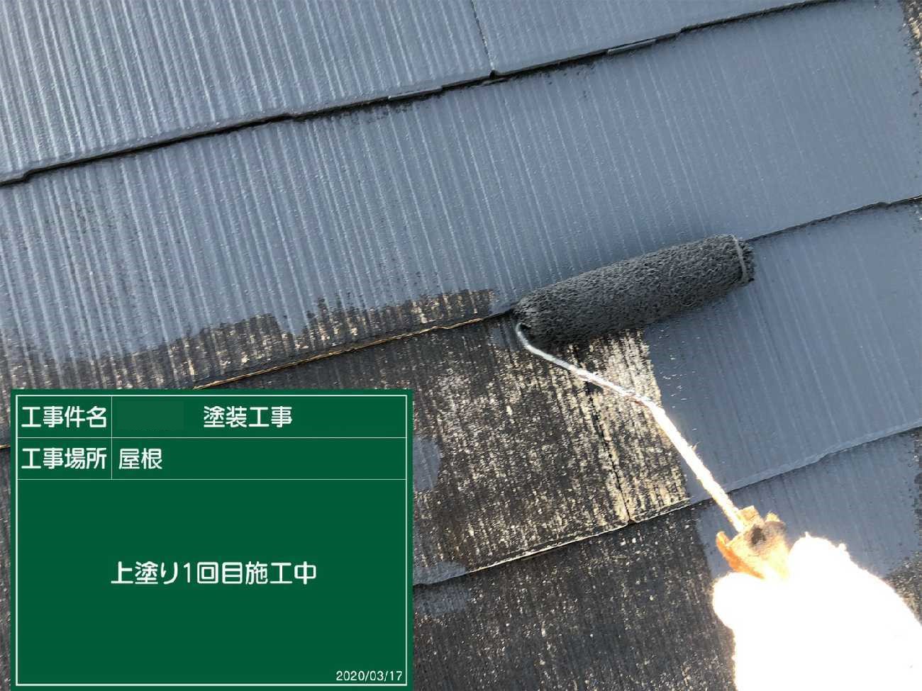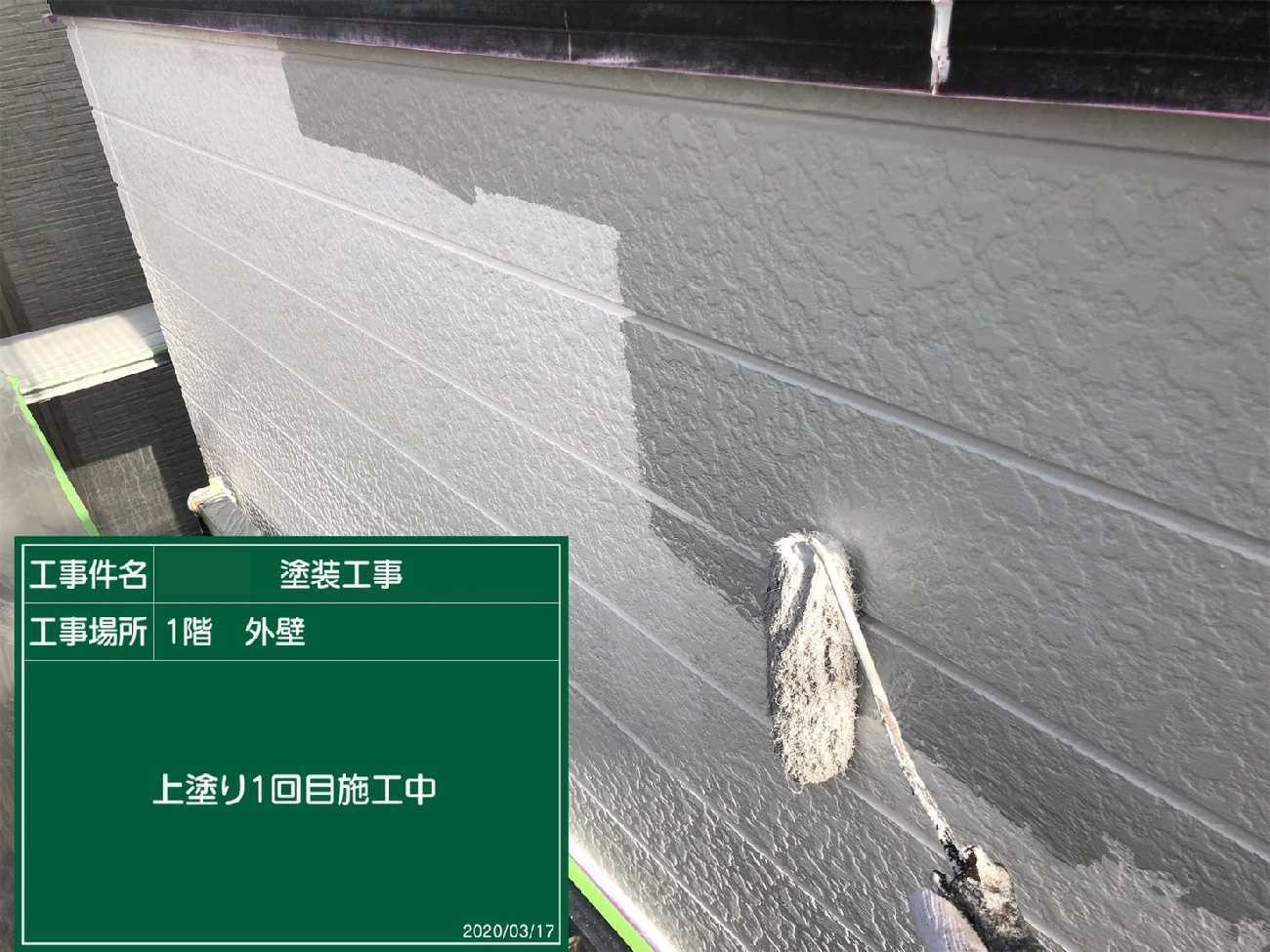 一回目上塗りは下塗りと上塗りの間に塗る工程で、塗装に厚みを出していきます。