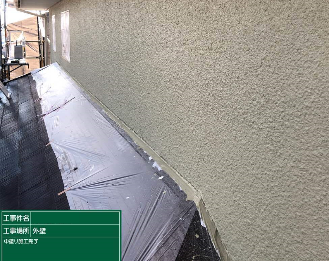 中塗り工程は塗膜の厚みを適切に作るために必要です。工程を分け、都度しっかり乾かすことが工事成功のポイントです。