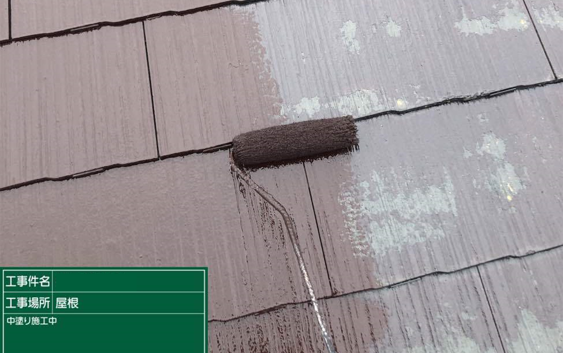 下塗りはこの後に塗る塗料の密着性を高めるために重要な工程です。劣化状況によっては屋根材が塗料を過分に吸い込んでしまい、材料が多く必要な場合もあります。
