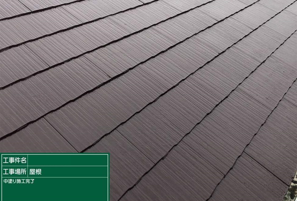 中塗りまで終わるとすっかり屋根の見た目がかわります。