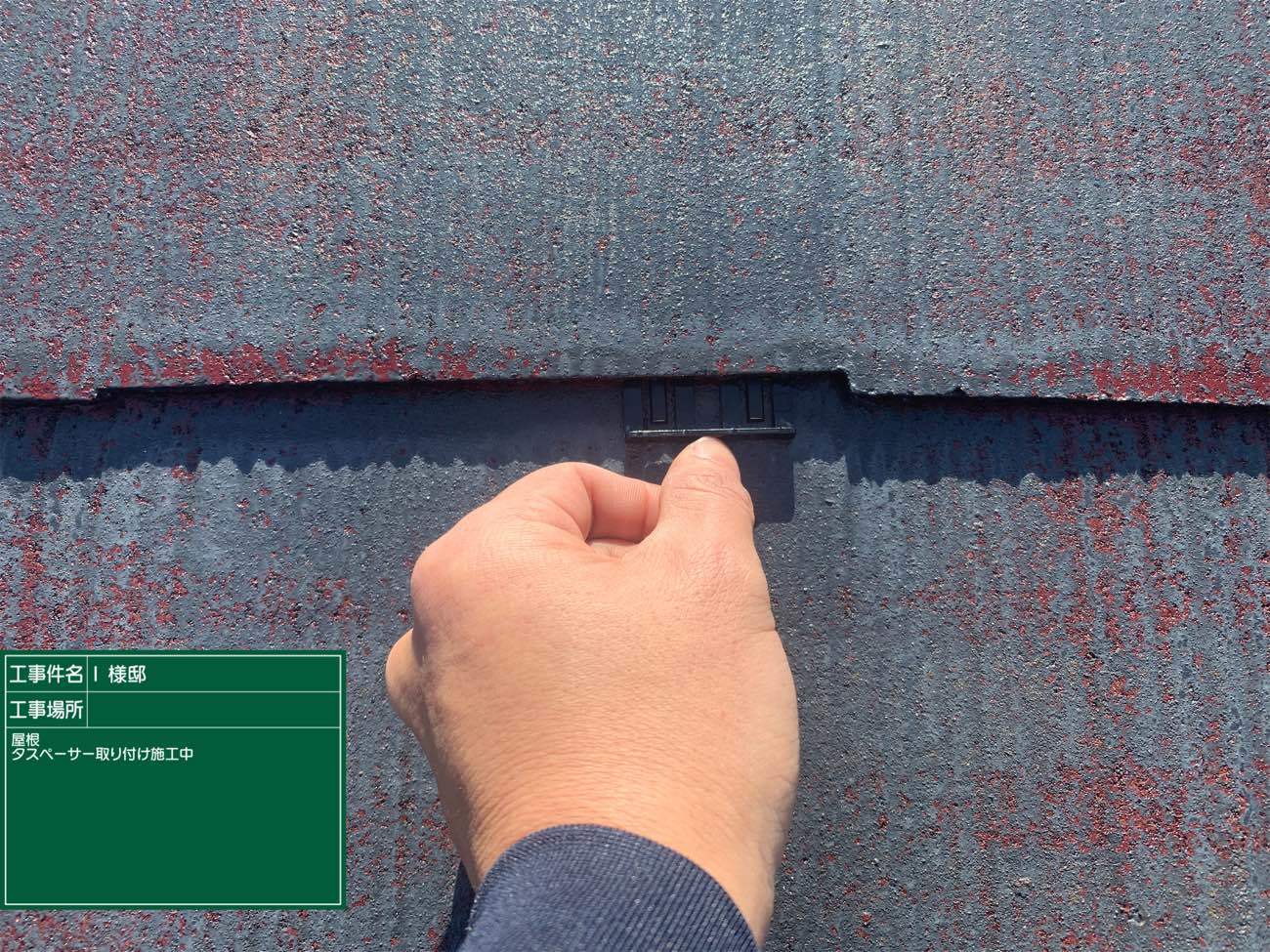 タスペーサーは屋根の通気口の役割を果たします。その数なんと1000個近く!すべて手作業で入れていきます。