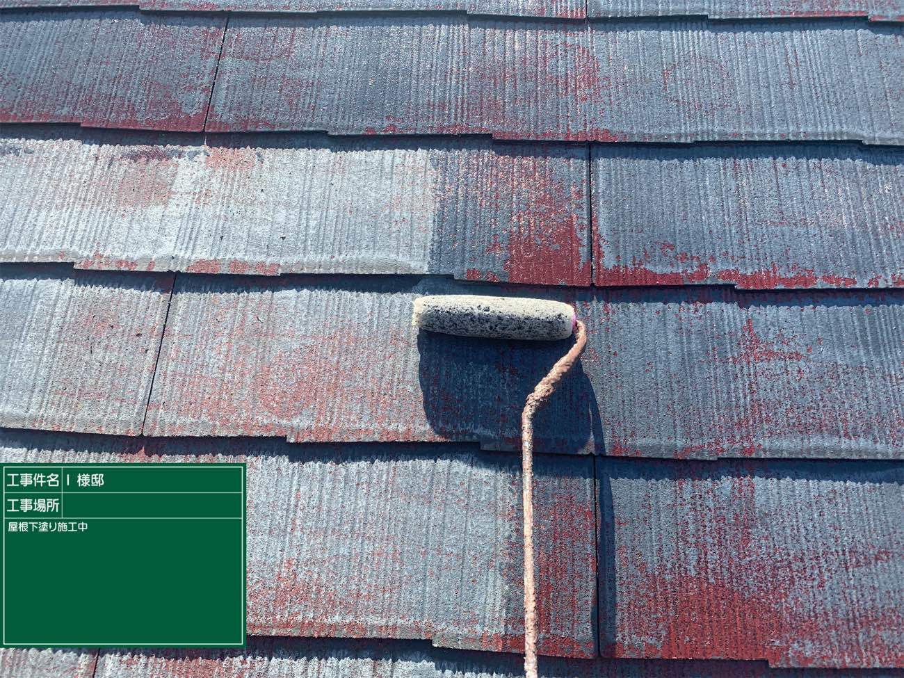下塗り材を塗布していきます。濡れたような色は適切に塗れている証拠。