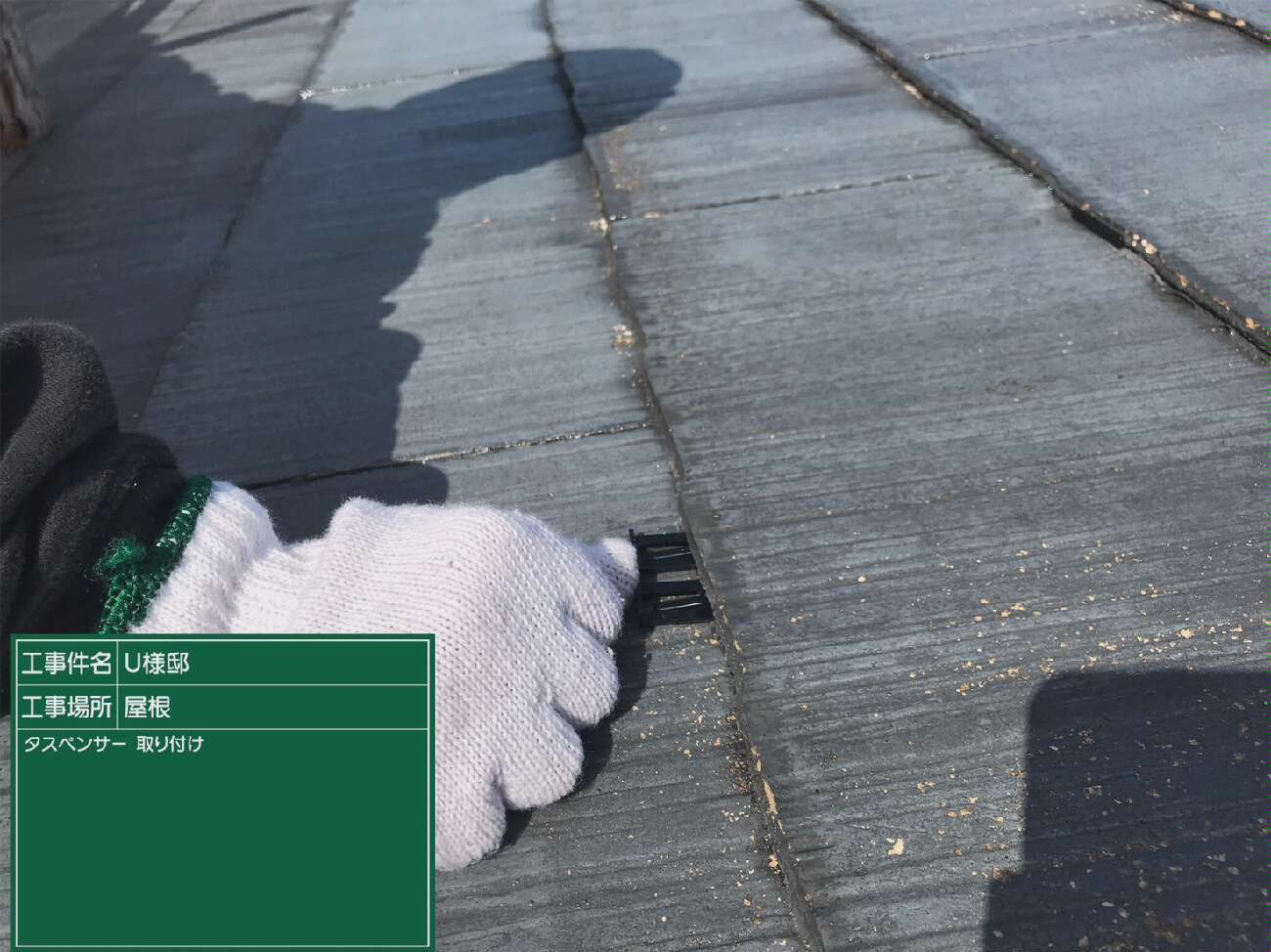 お屋根の隙間にタスペーサーを取り付けていきます。