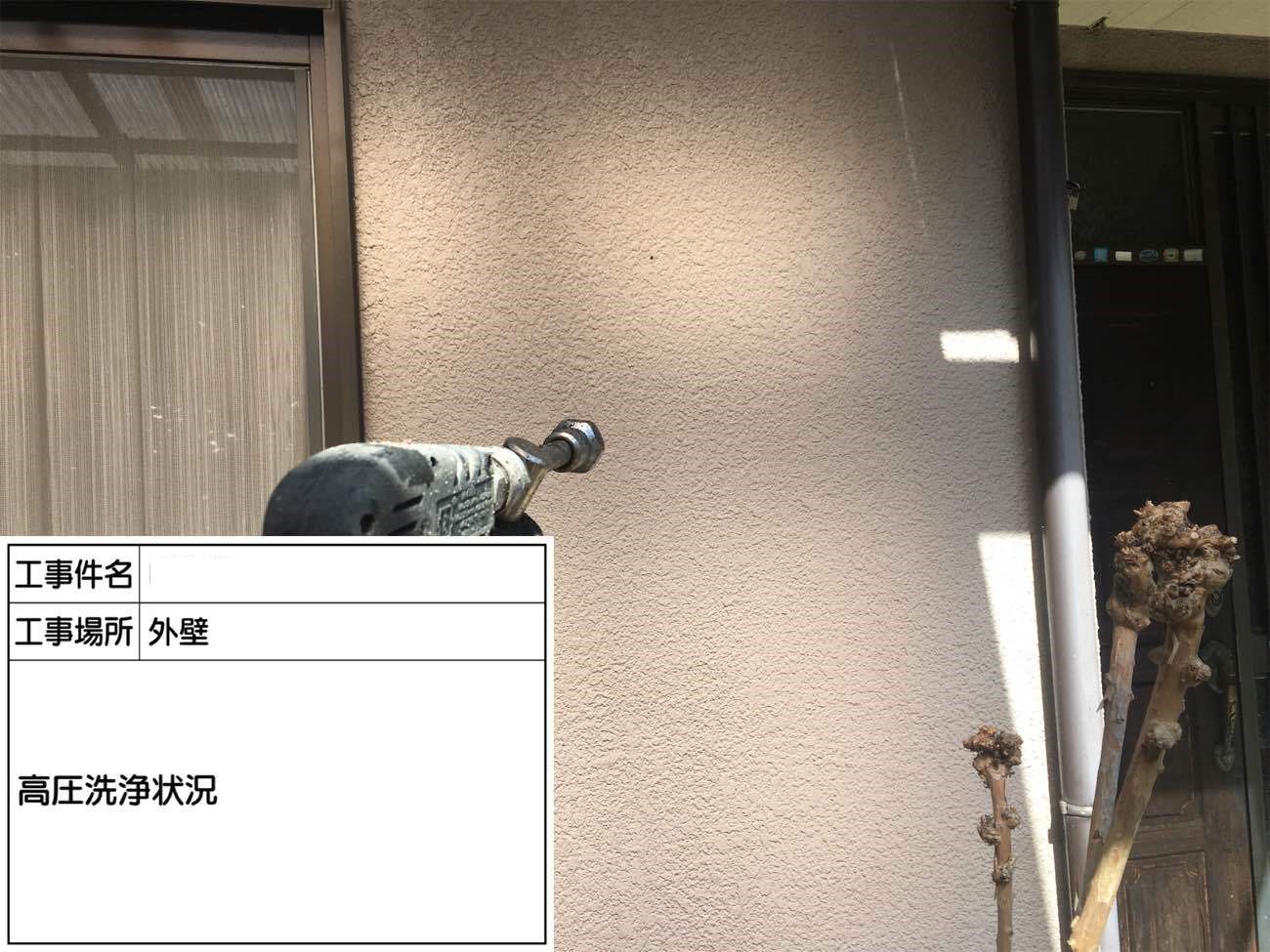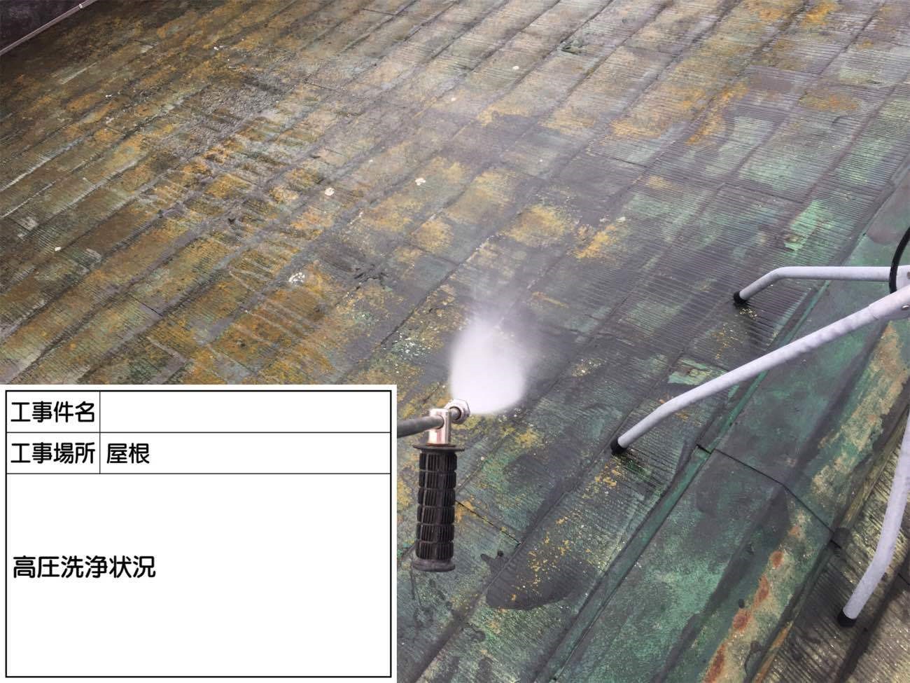 塗装作業前に入る前に、高圧のお水で藻や苔をしっかり洗い流します。