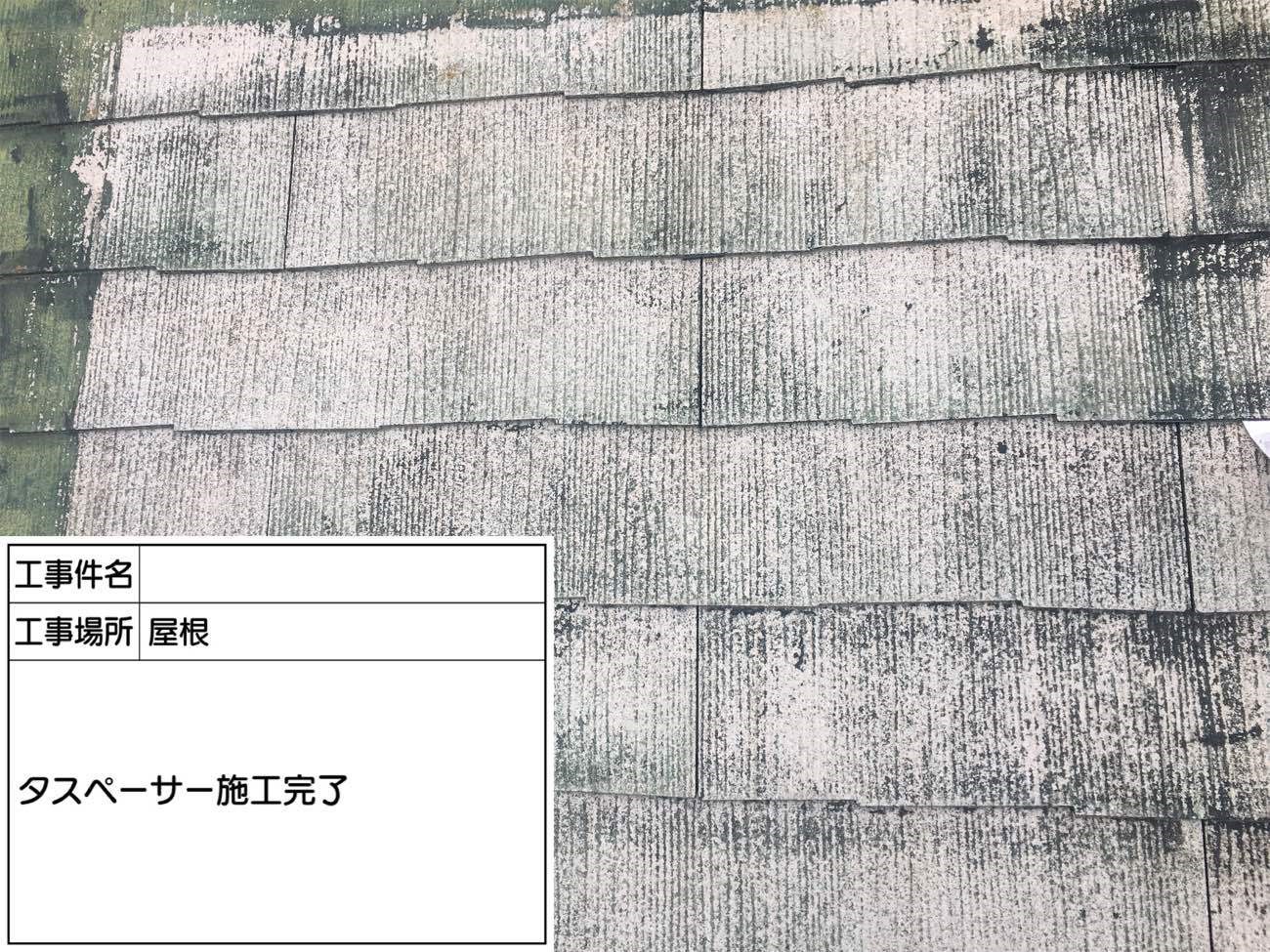 タスペーサー取付完了です。 タスペーサーをとりつけることで雨漏りや腐食が起こらないようにします。