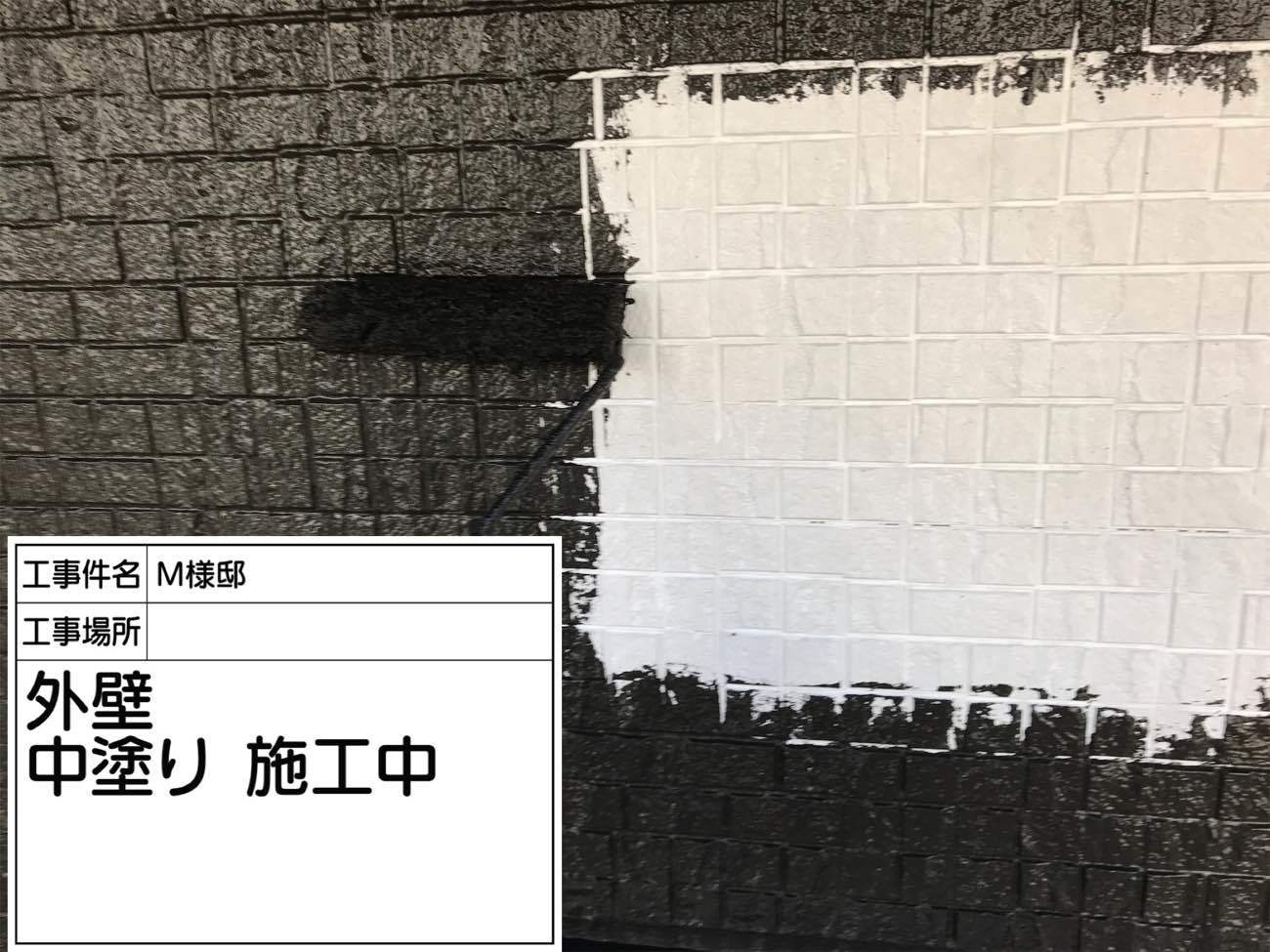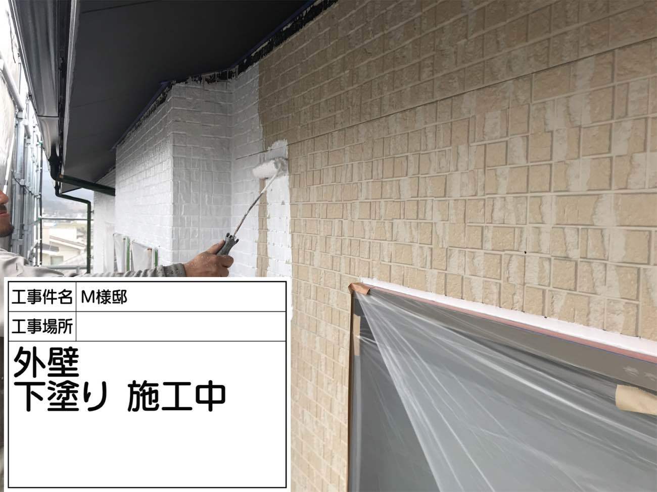 外壁の下塗り作業で中塗り塗料との密着度を高めます。