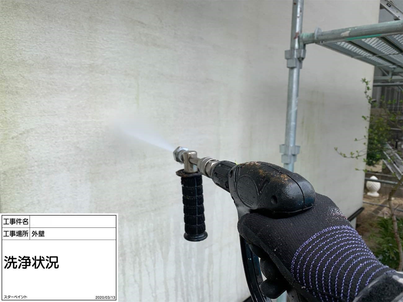 外壁も同様、高圧洗浄機で汚れをくまなく洗い流します。