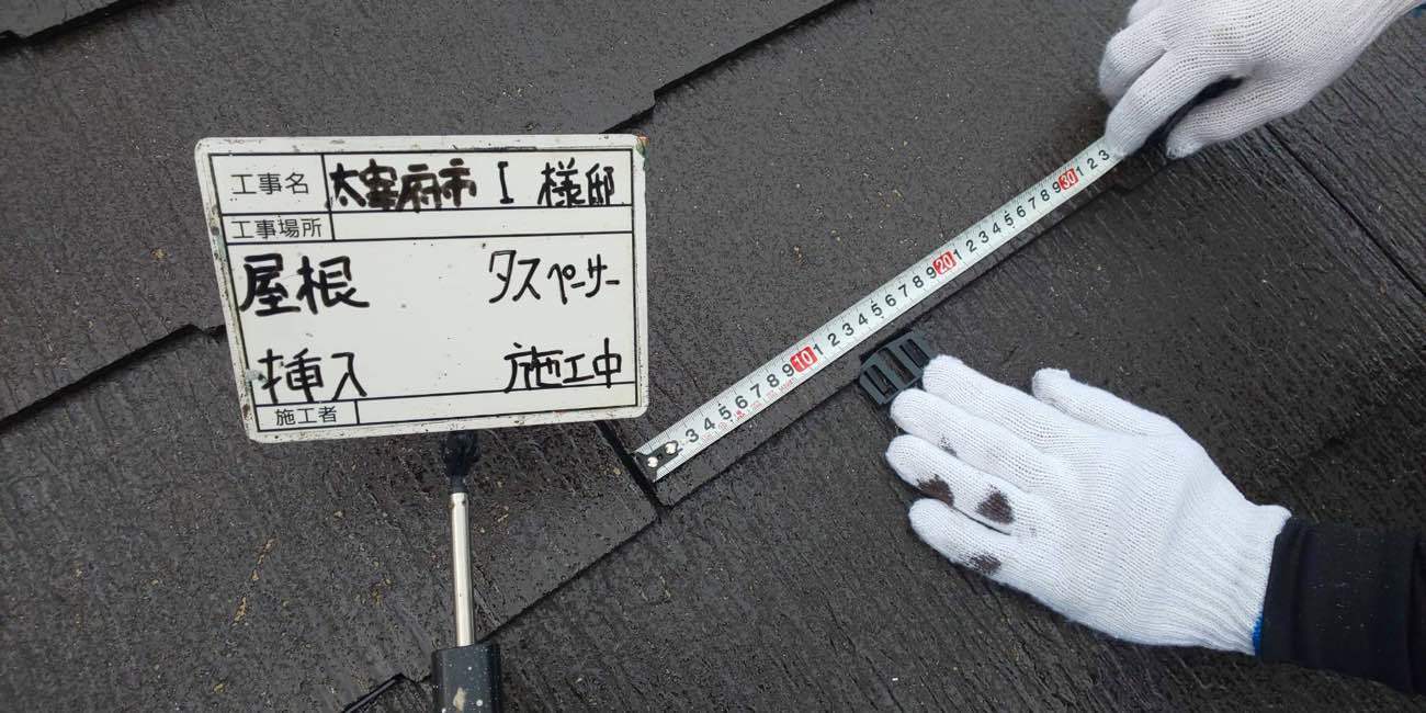 タスペーサーは等間隔で屋根全体に入れていきます。平均して1000個以上のタスペーサーを入れていきます。