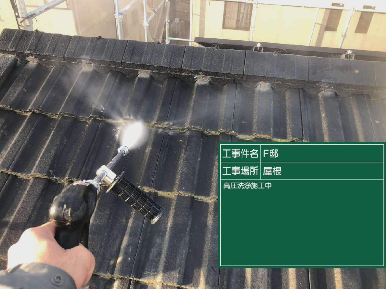 高圧のお水でカビや藻、コケ、汚れをしっかり洗い流します。