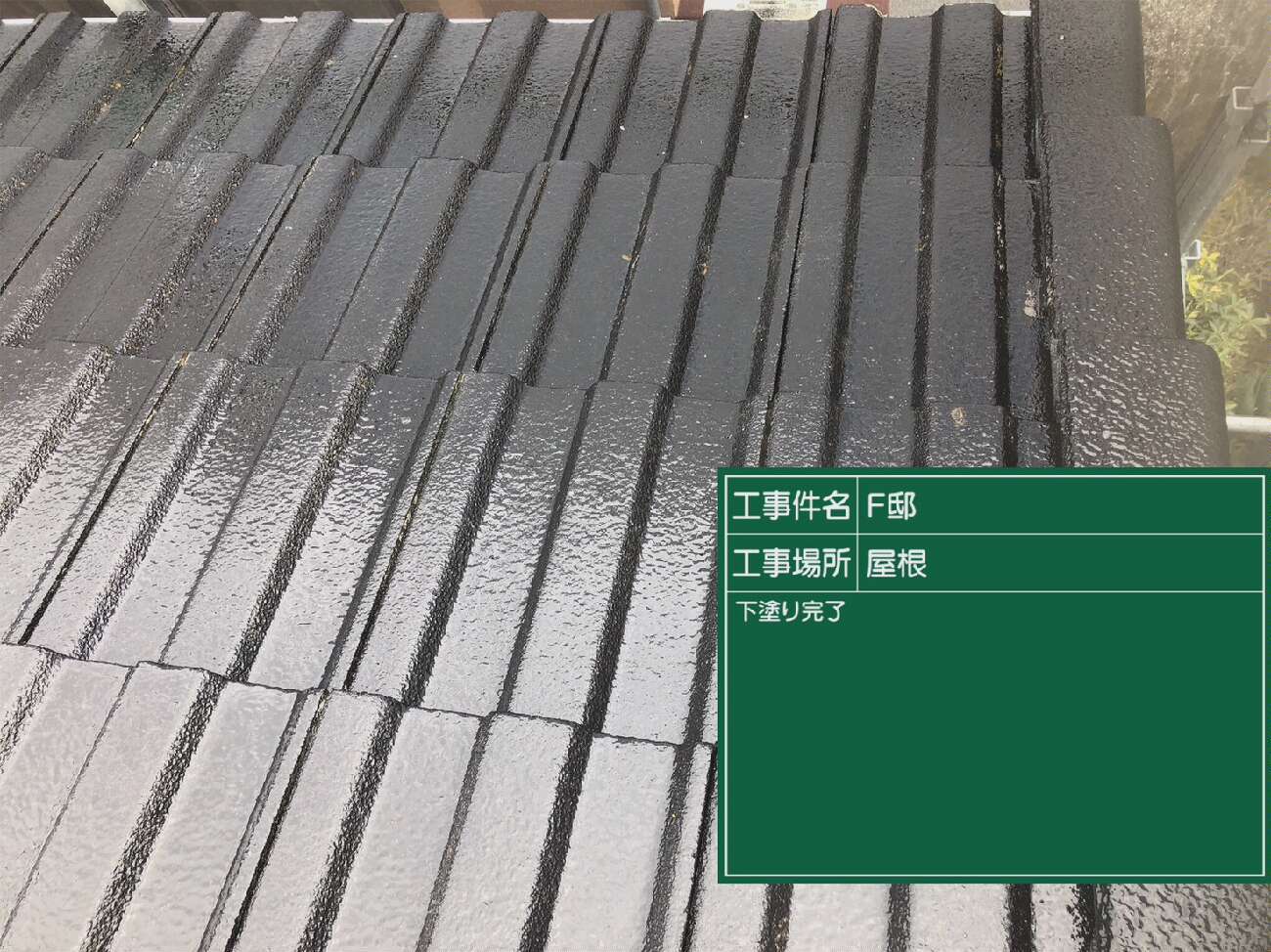 下塗り作業完了です。この工程で手を抜くと塗膜が剥がれる原因となります! 注意しましょう!!