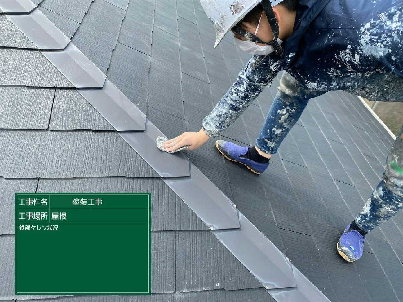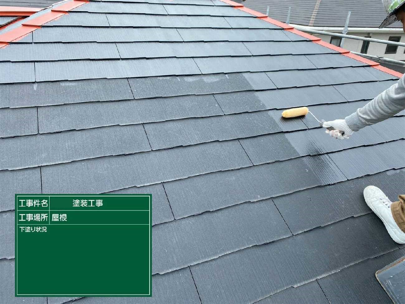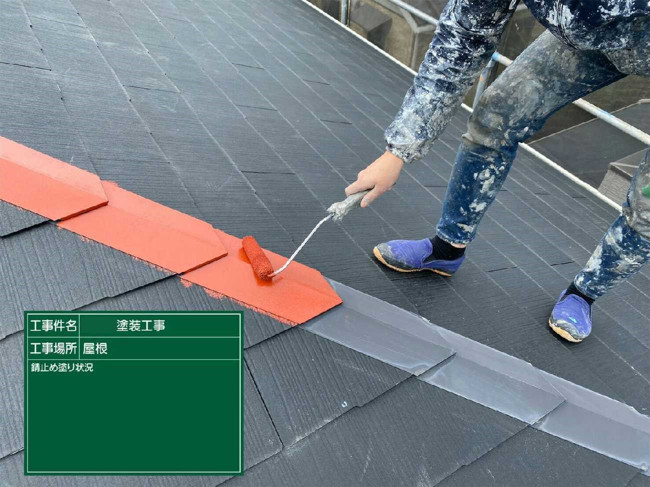 板金の錆止めまで完了したら、屋根の下塗り作業を行っていきます。