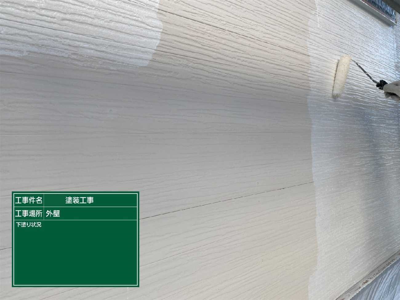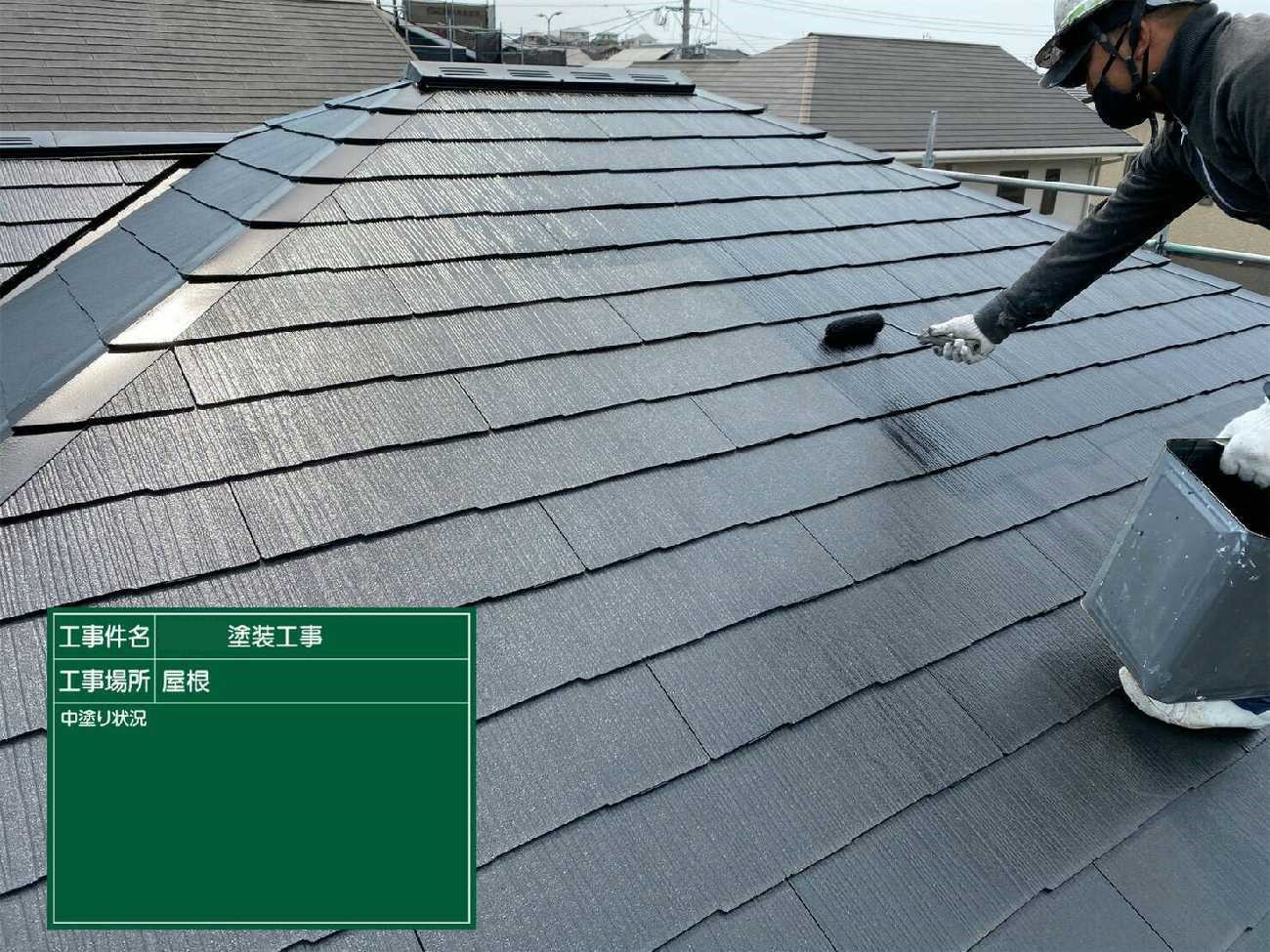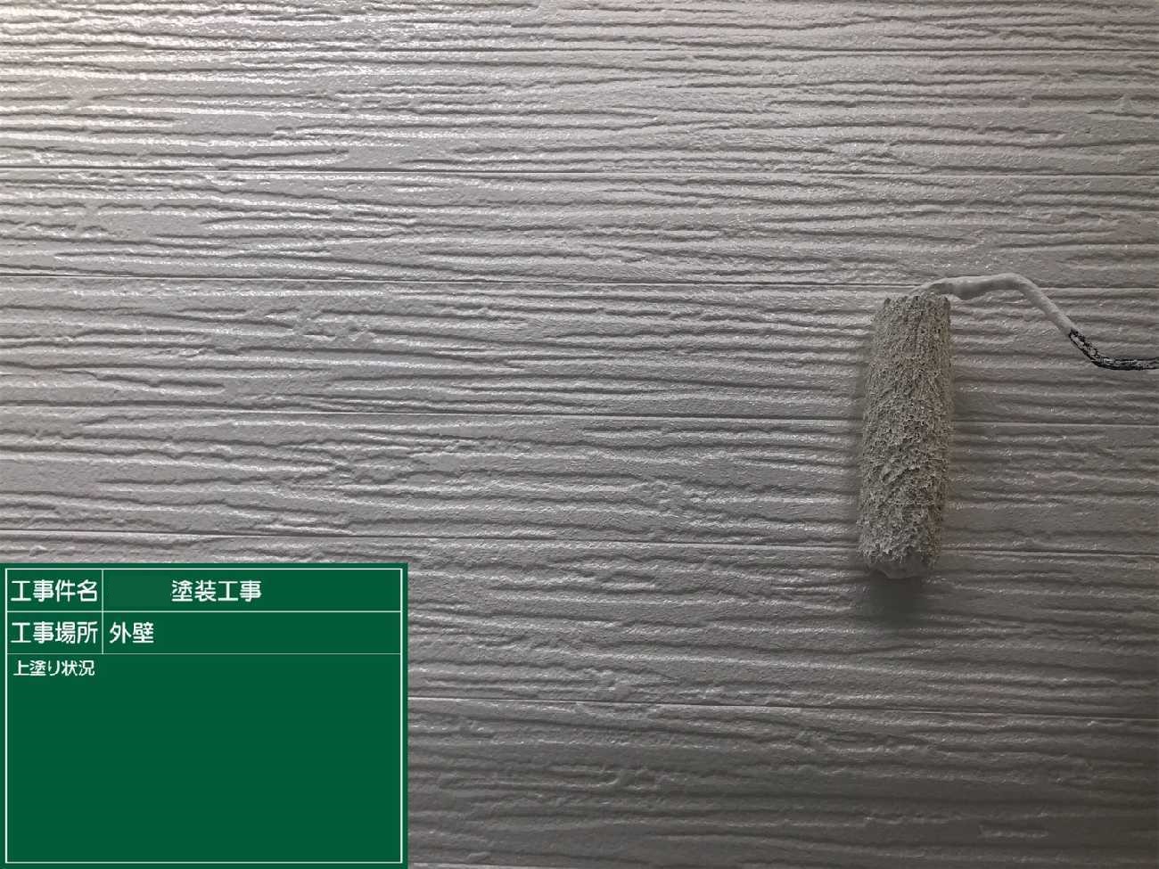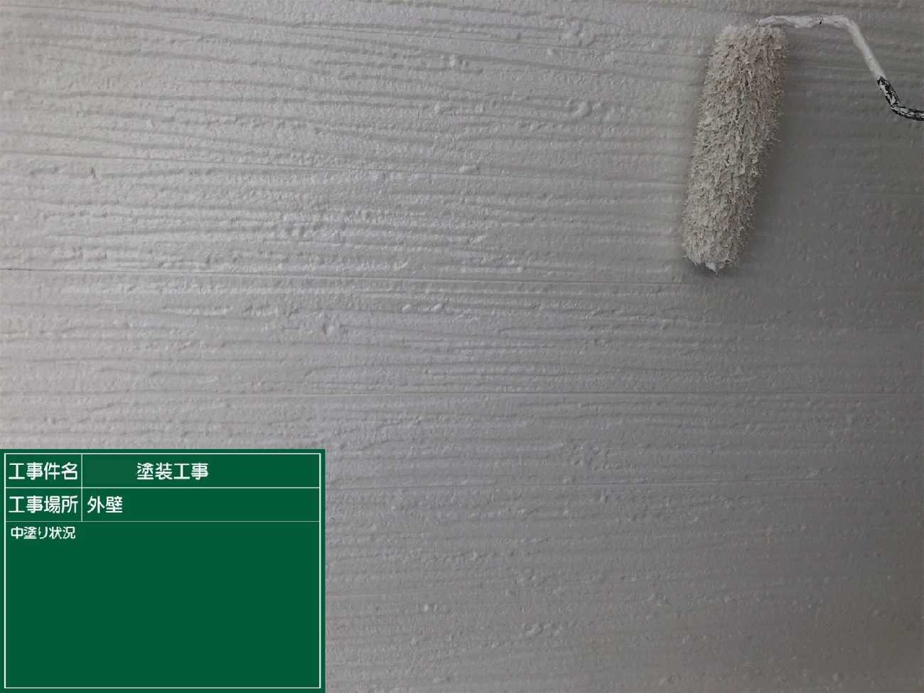 外壁中塗り作業の様子です。塗装に厚みを出していきます。