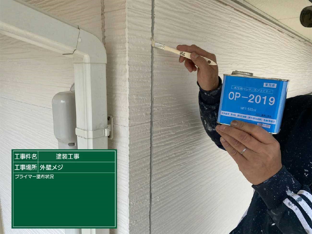 プライマーを塗布し、シーリング材の接着を促していきます。