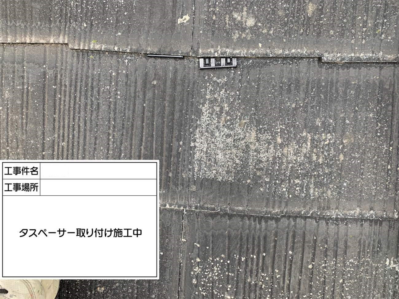 屋根にタスペーサーという小さな部品を取り付けている作業です。