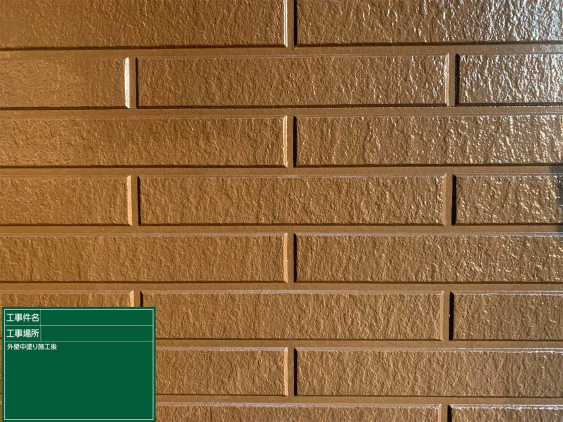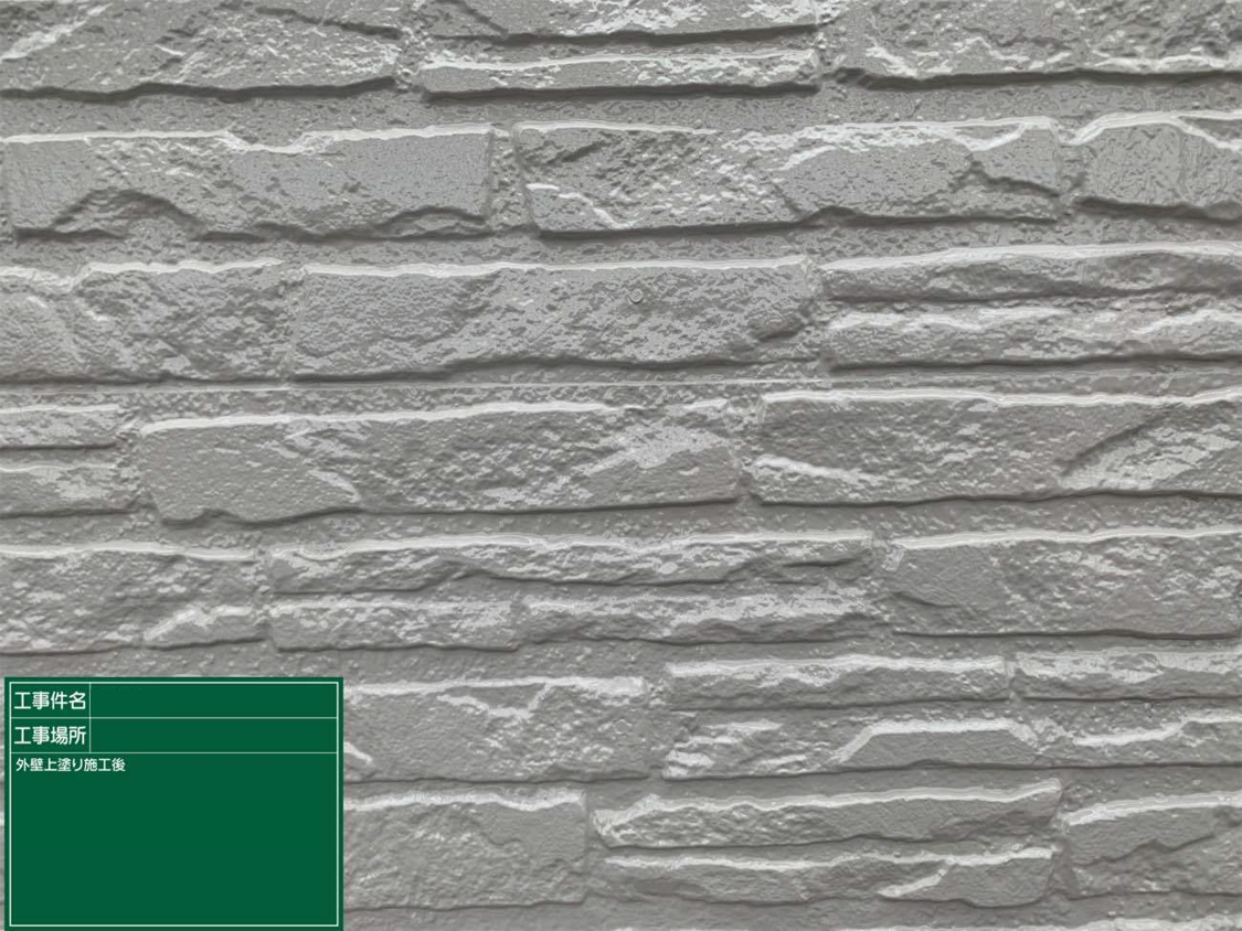 こちらのような目地のデザインがはっきりしているタイル調の場合は、目地出し施工といって、単色の塗りつぶしでないデザインにひと手間加えた施工を行うことも出来ます。