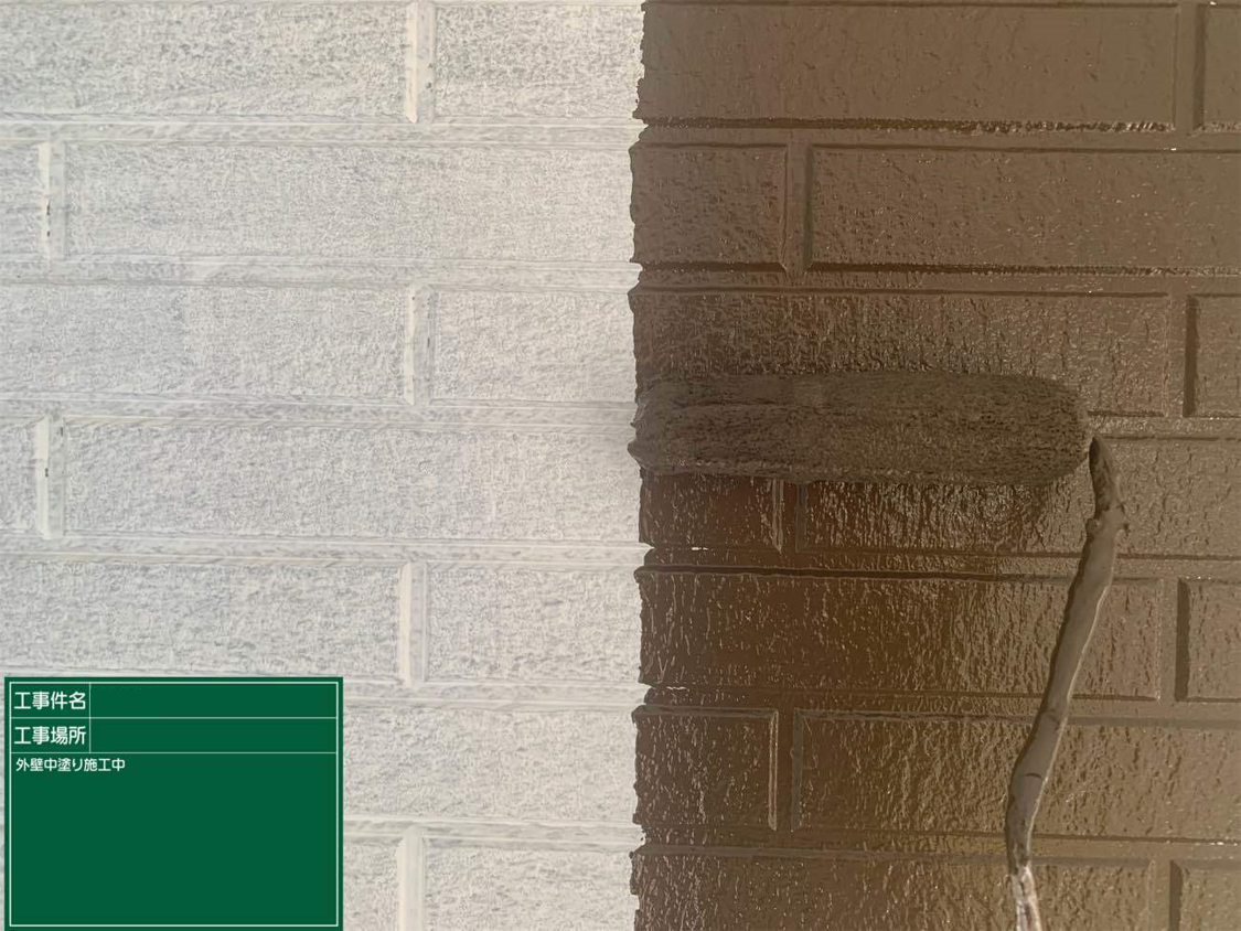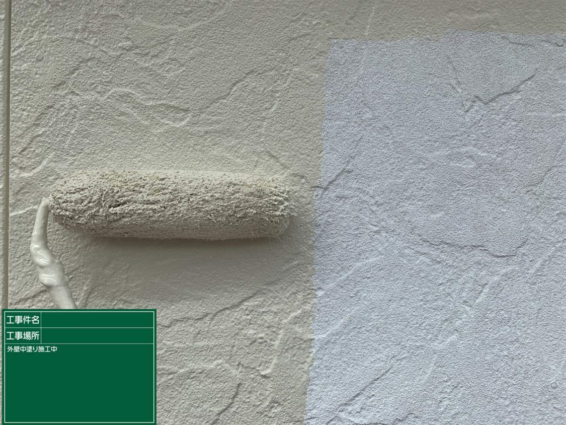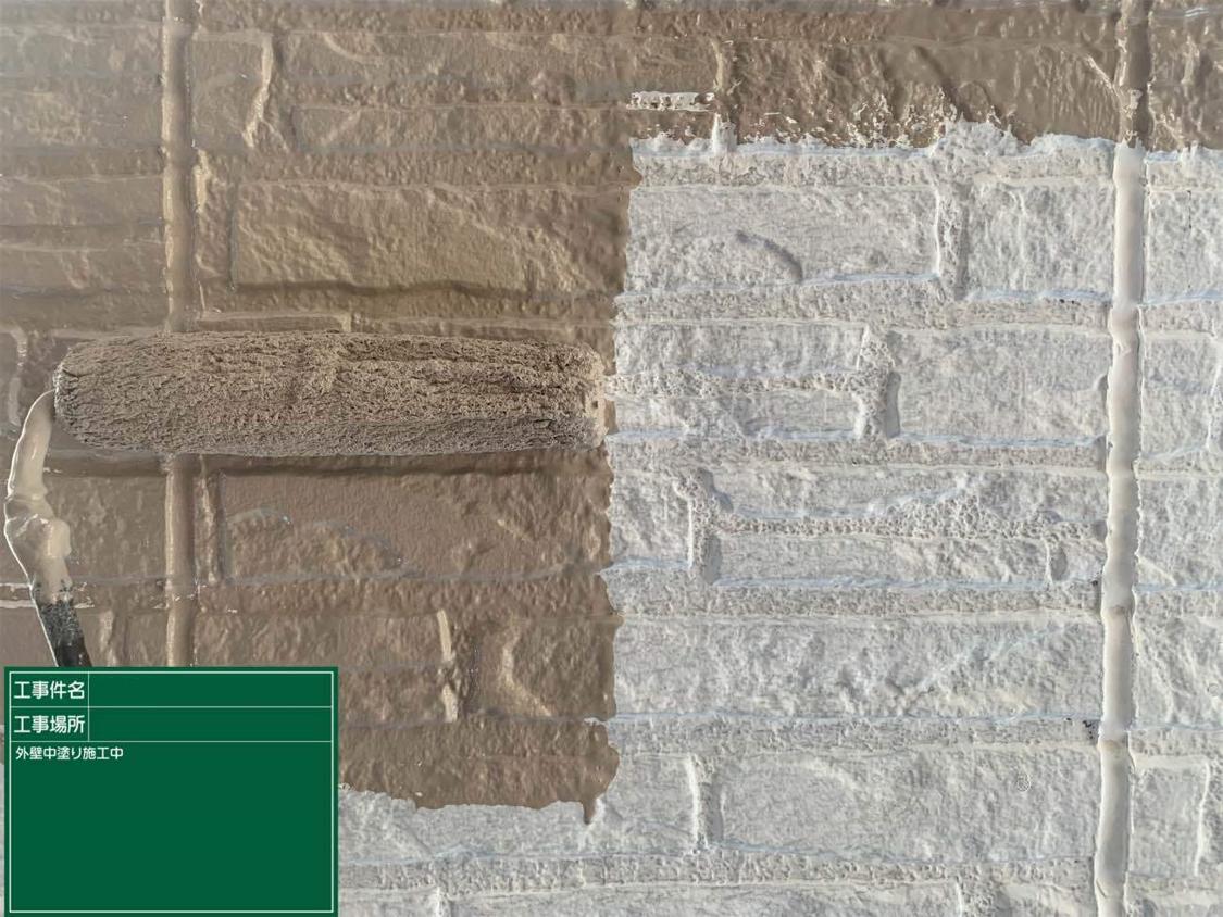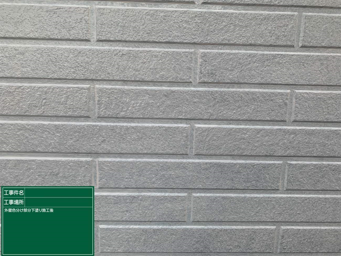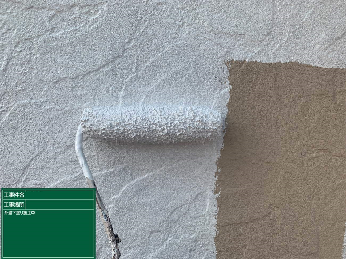 外壁の下塗り塗料は白です。細かな柄はどうしてもなくなってしまいますが、その分紫外線の影響を受けにくくなります。