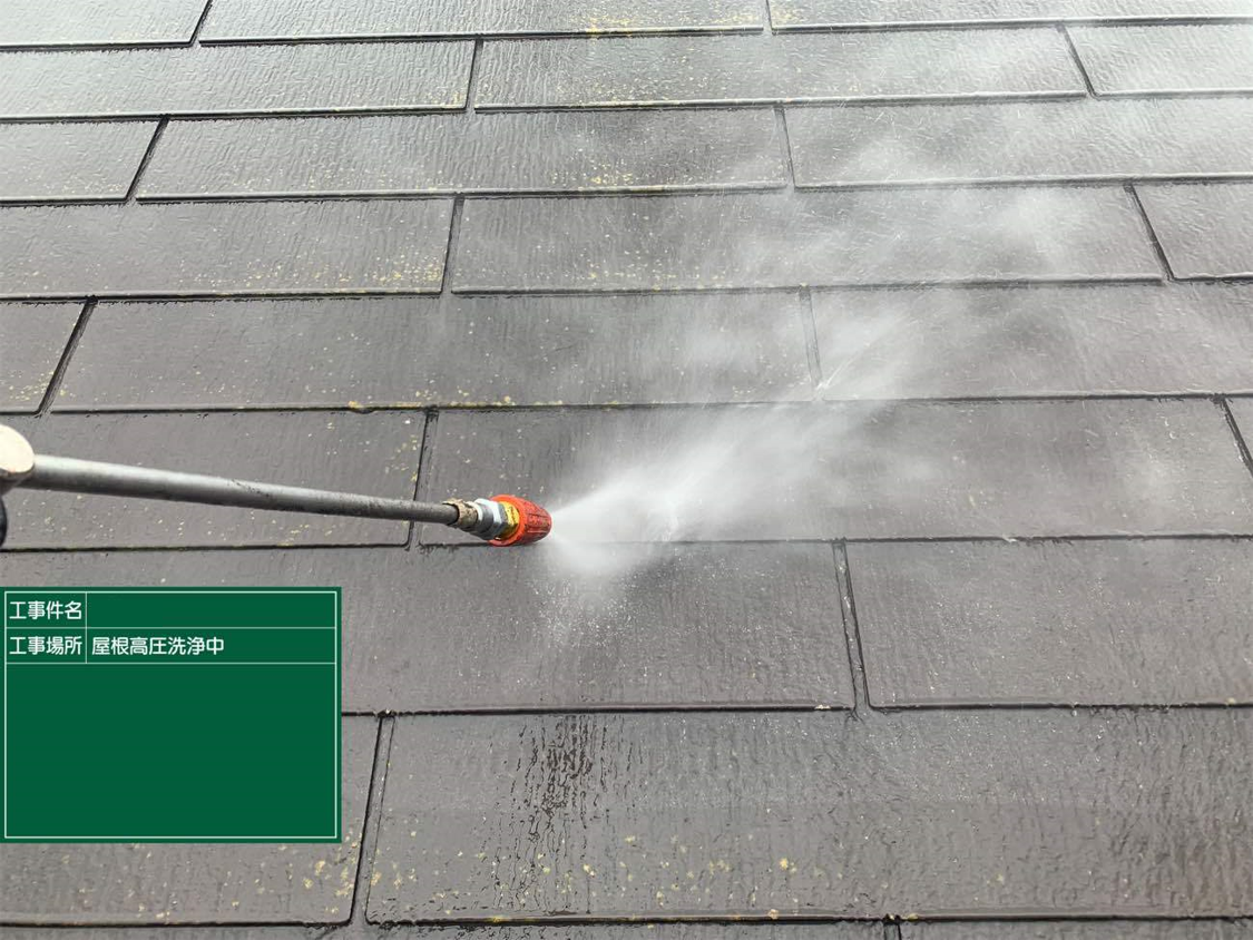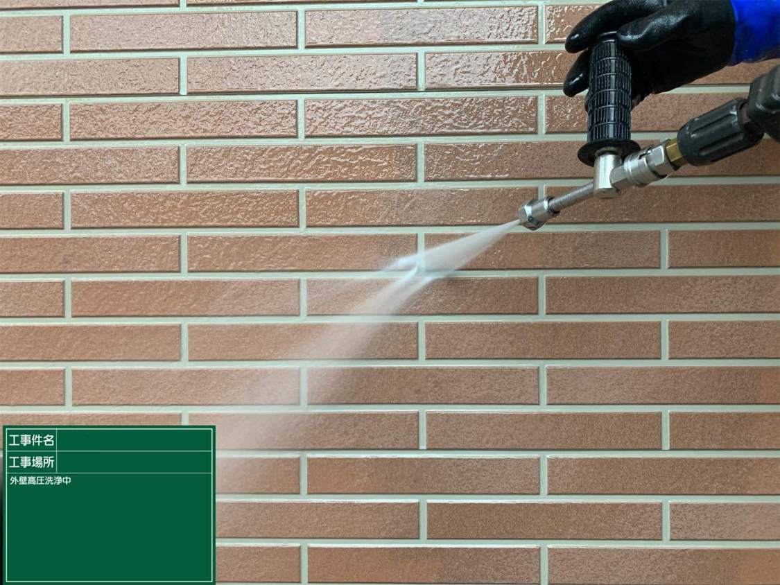 今回は3か所3色の色分けになります。まずは高圧洗浄をしっかりと。