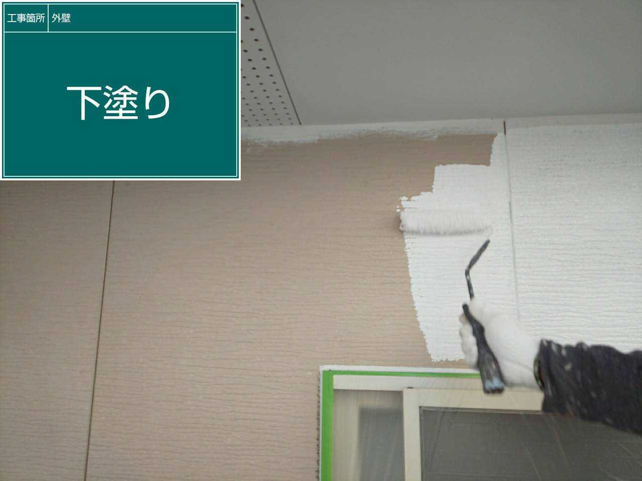 まずは下塗り塗装です。下塗りは外壁下地と中塗り・上塗り塗料の密着性を高める役割があります。