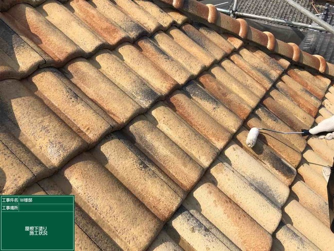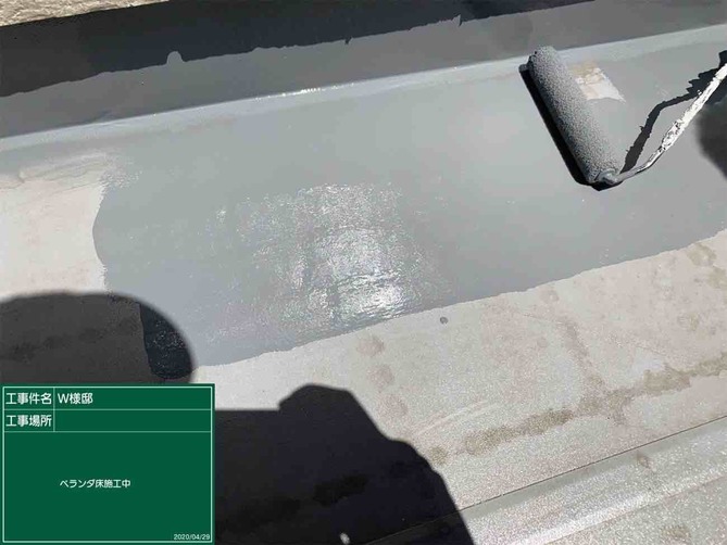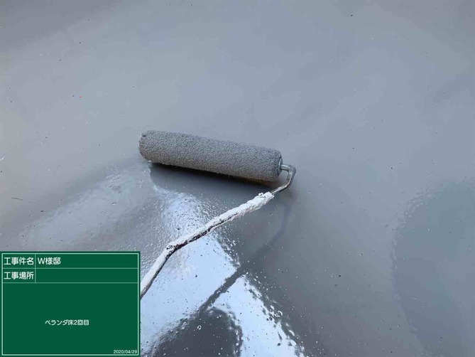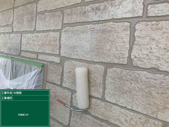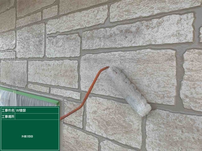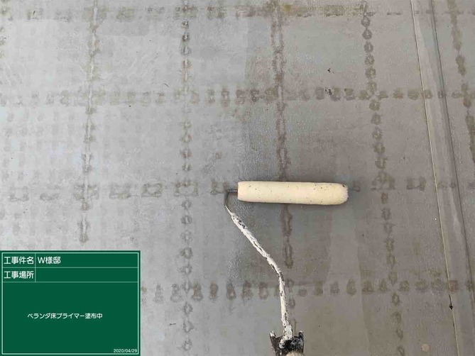 下地の状態を均一にして、下地と塗膜をしっかりと密着させるためにもプライマーという下塗り剤を塗布していきます。