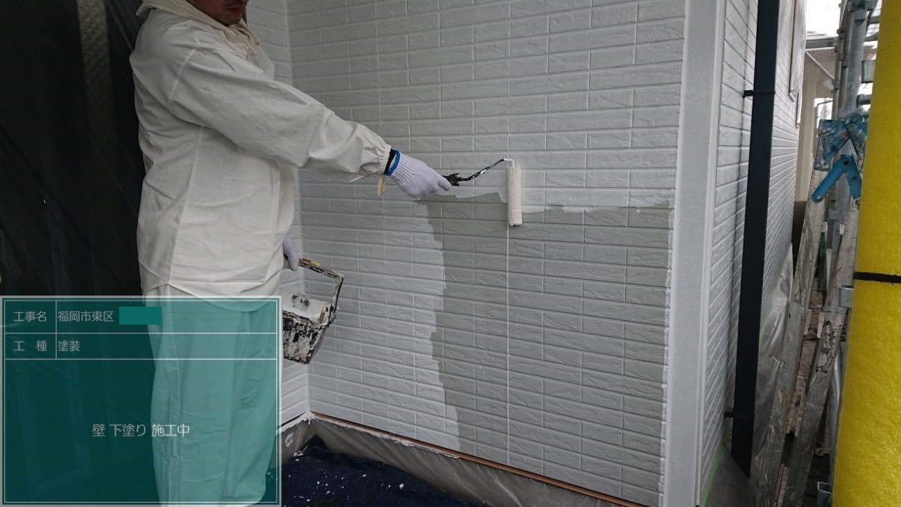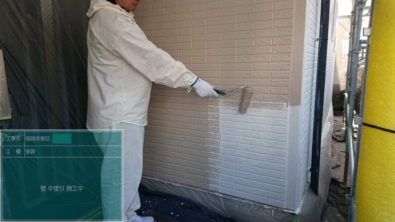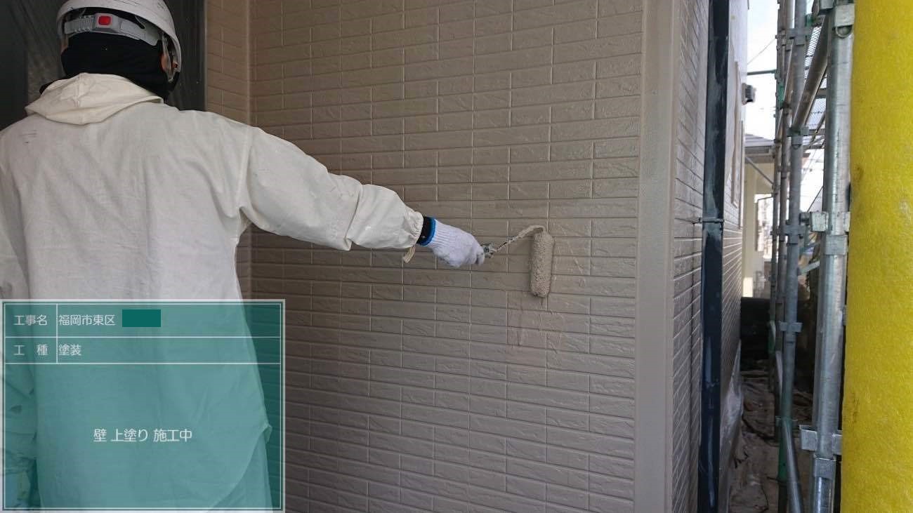 外壁も同じように下塗り、中塗り、上塗りの順番で塗装を行っています。