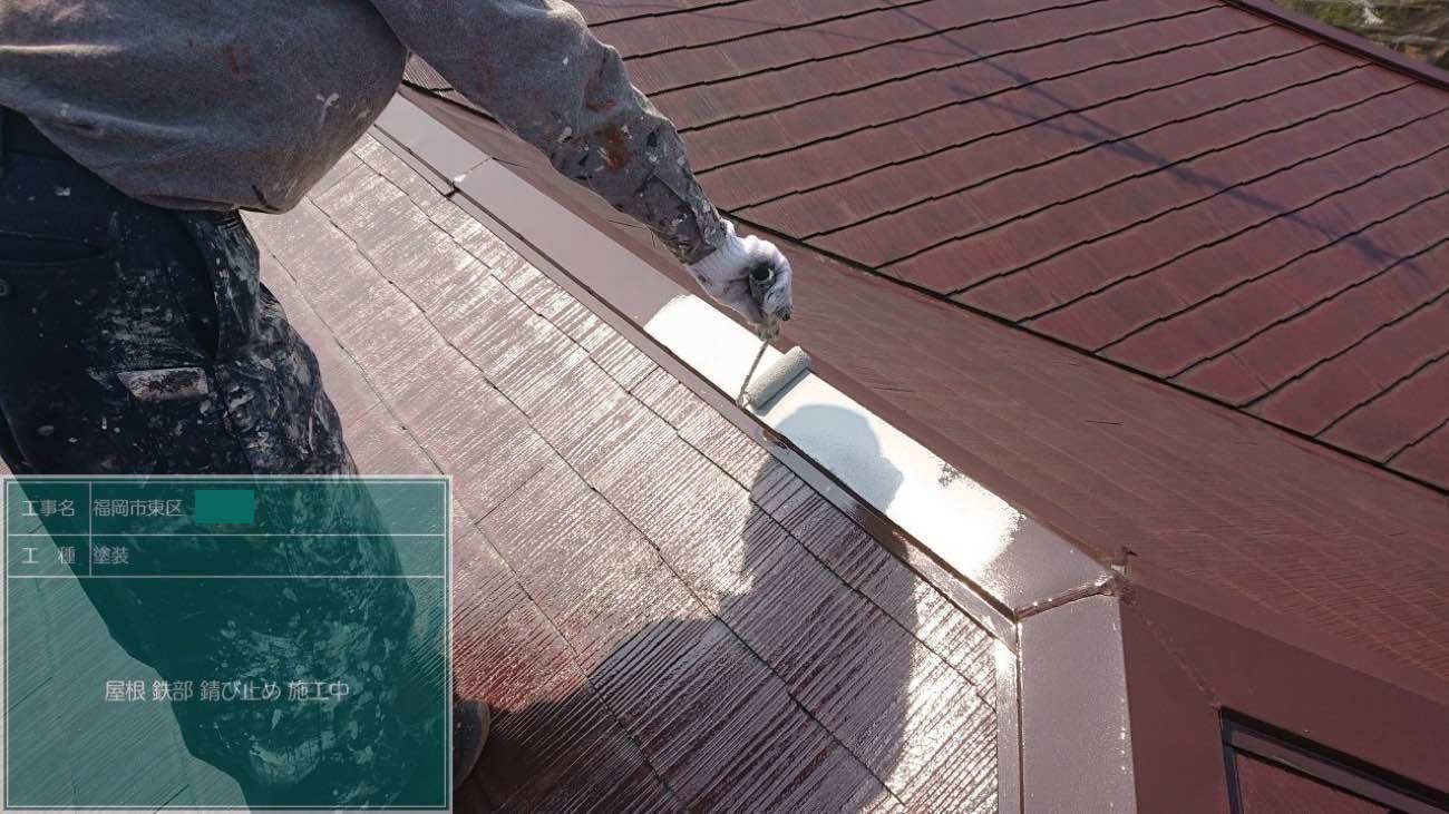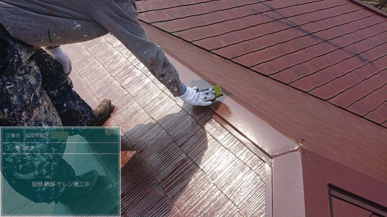 これは屋根の鉄部です。ケレン作業といい、鉄部に付着しているサビや汚れを削り落とす作業になります。