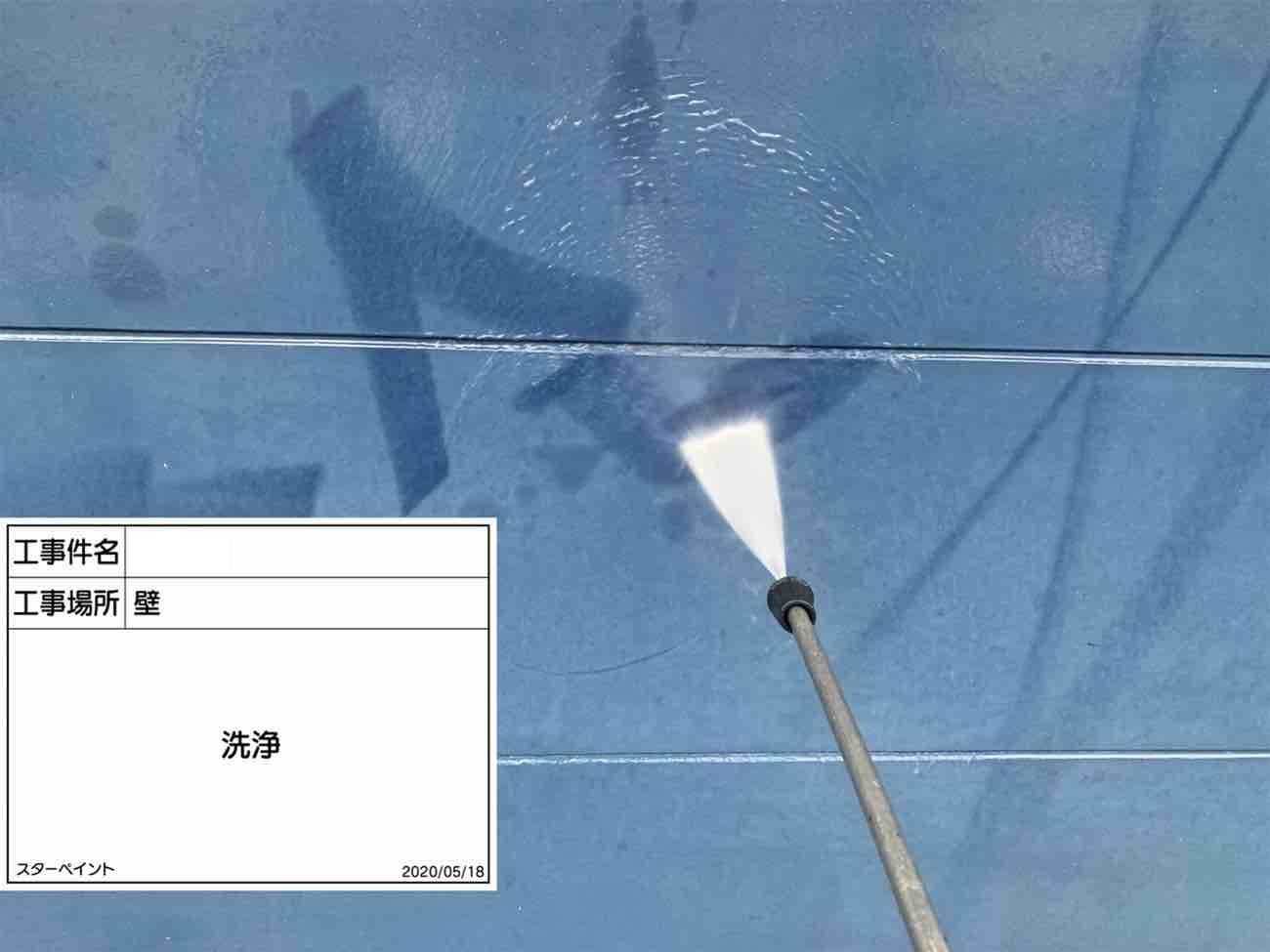 外壁の洗浄作業を行います。洗浄で外壁に付着している汚れなどを一掃していきます。