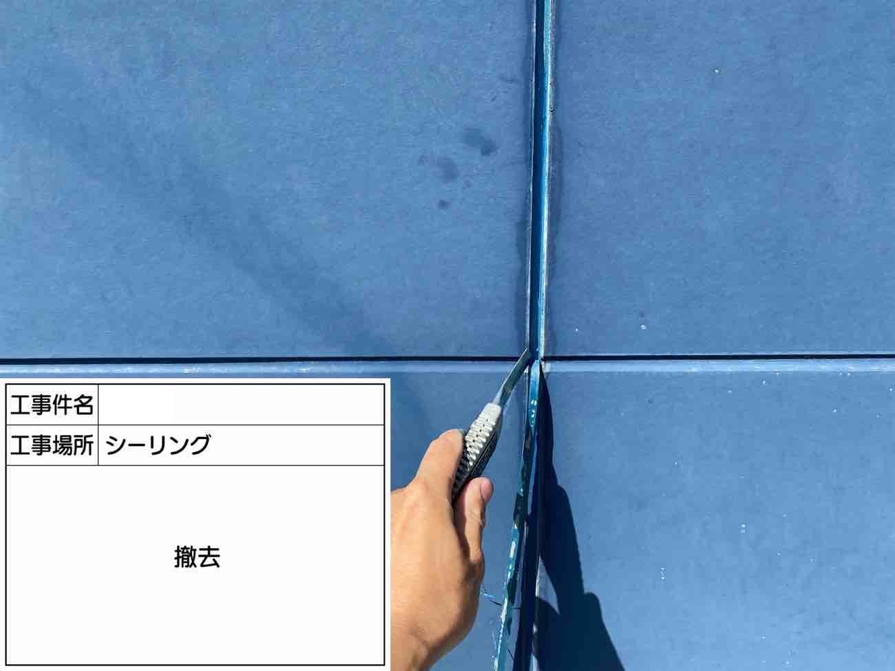 目地のシーリングを新しくするためにカッターを使い撤去していきます。