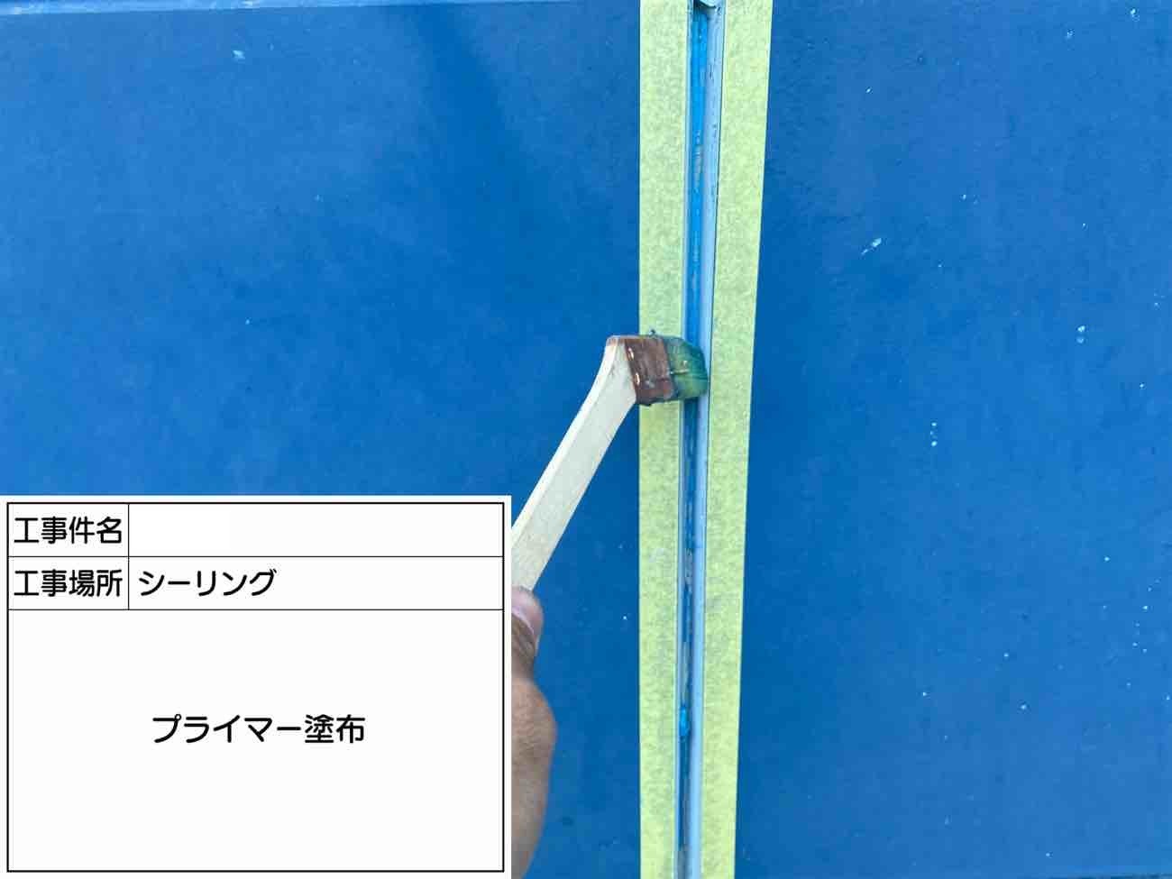 目地にプライマーを塗布しシーリング材が接着しやすいようにしていきます。