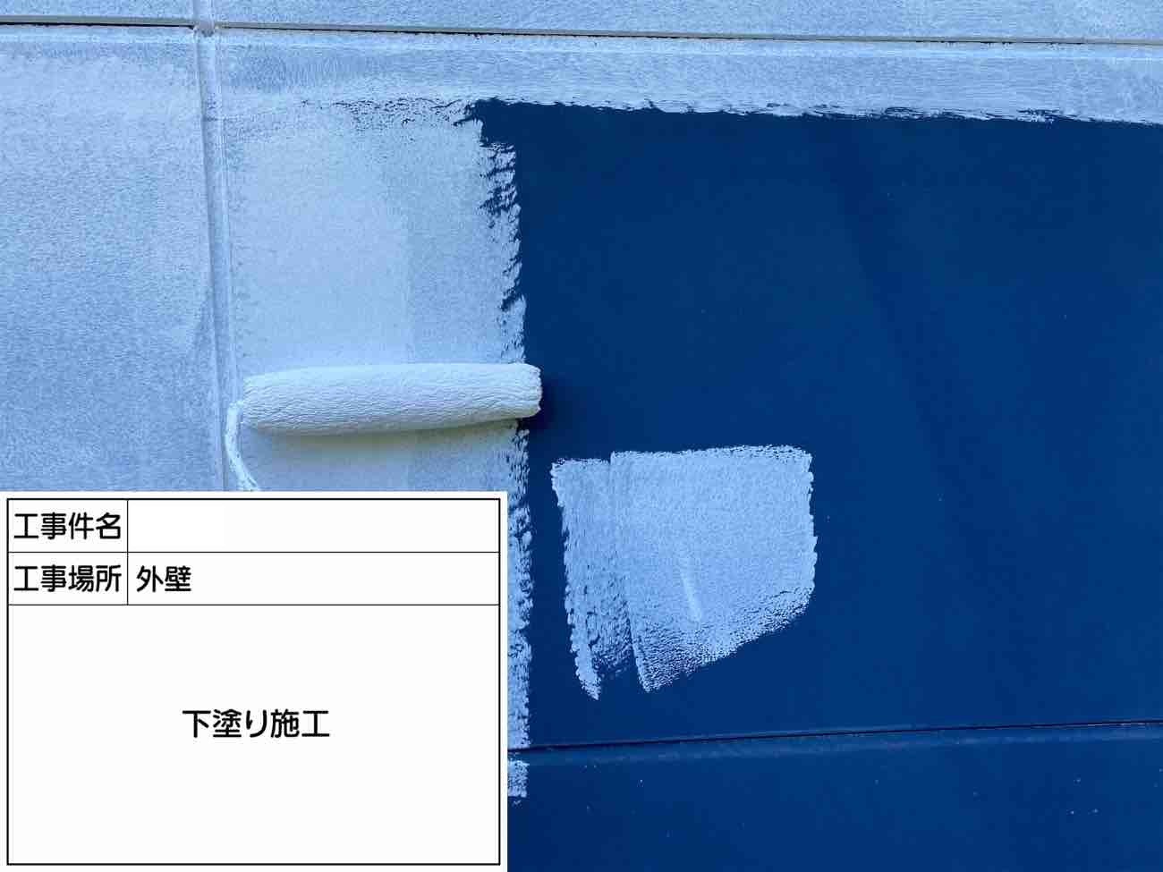 目地の作業が完了したら、外壁の塗装を行います。ますは下塗りで下地と塗料が密着するようにぬっていきます。