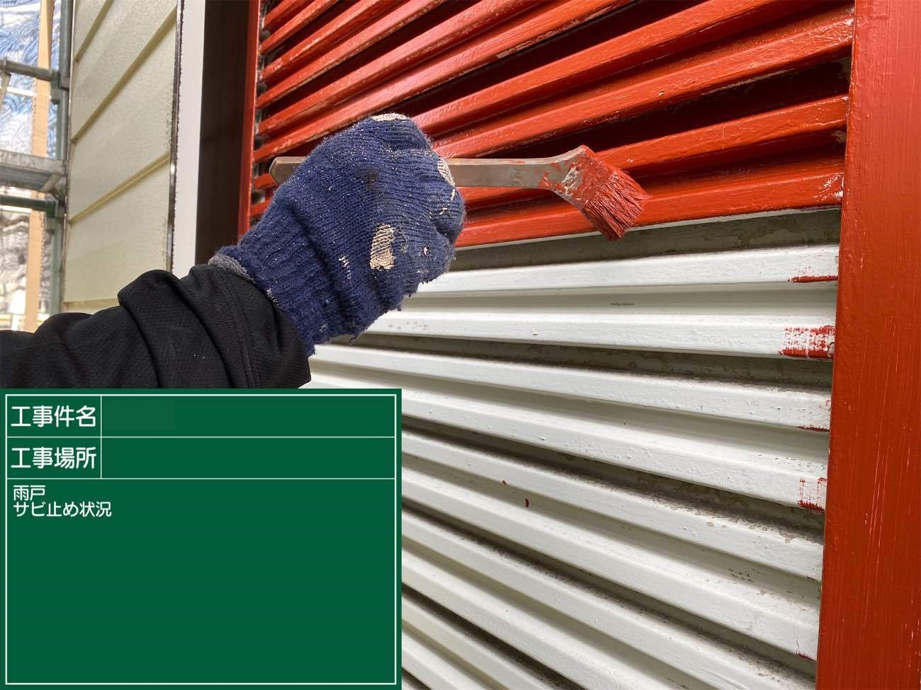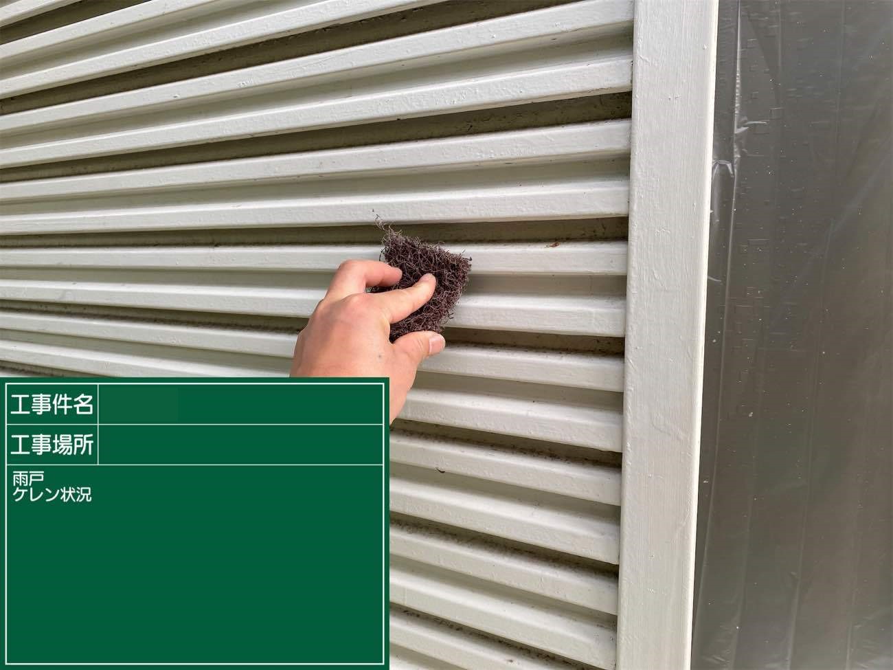 雨戸の塗装のようすもご紹介していきます。 これはケレン作業といって、鉄部のサビや汚れを落とす工程です。