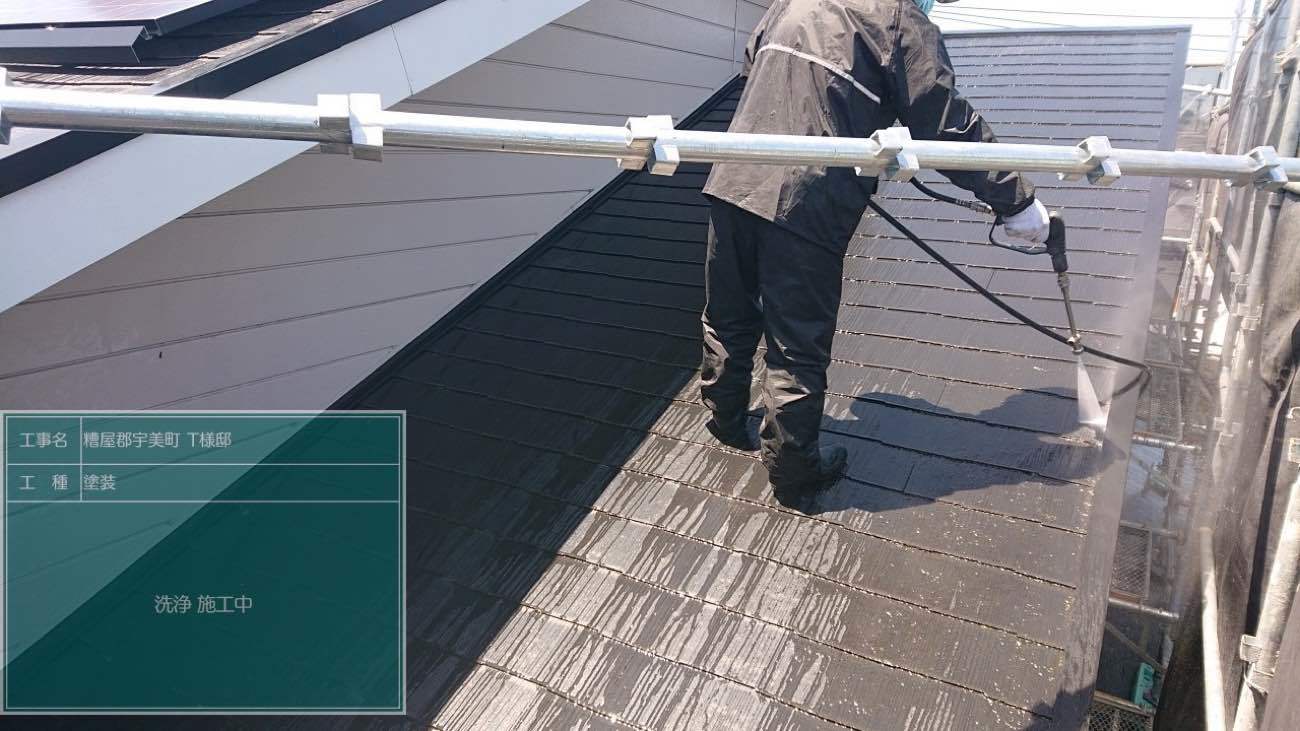 屋根や外壁だけでなく、軒天付帯部など塗装箇所は基本的にすべて洗浄していきます。