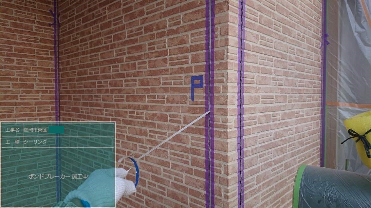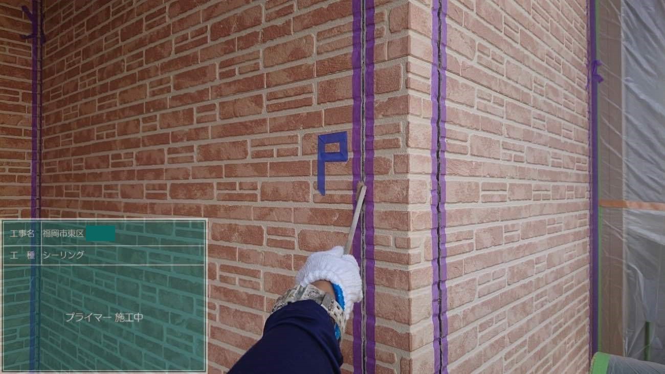 次に目地にプライマーという接着を促すものを塗布していきます。