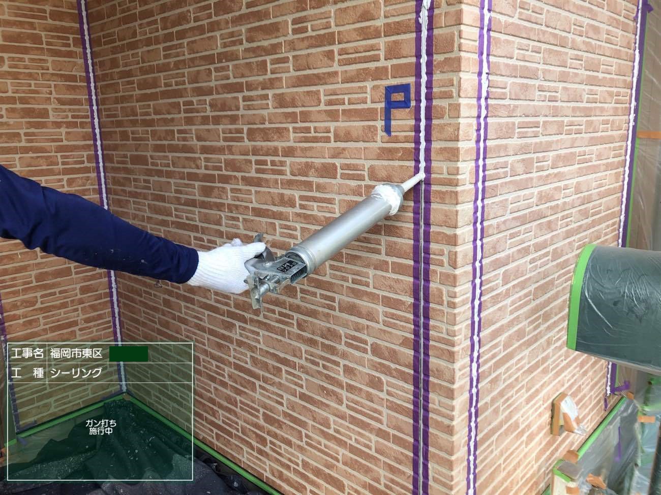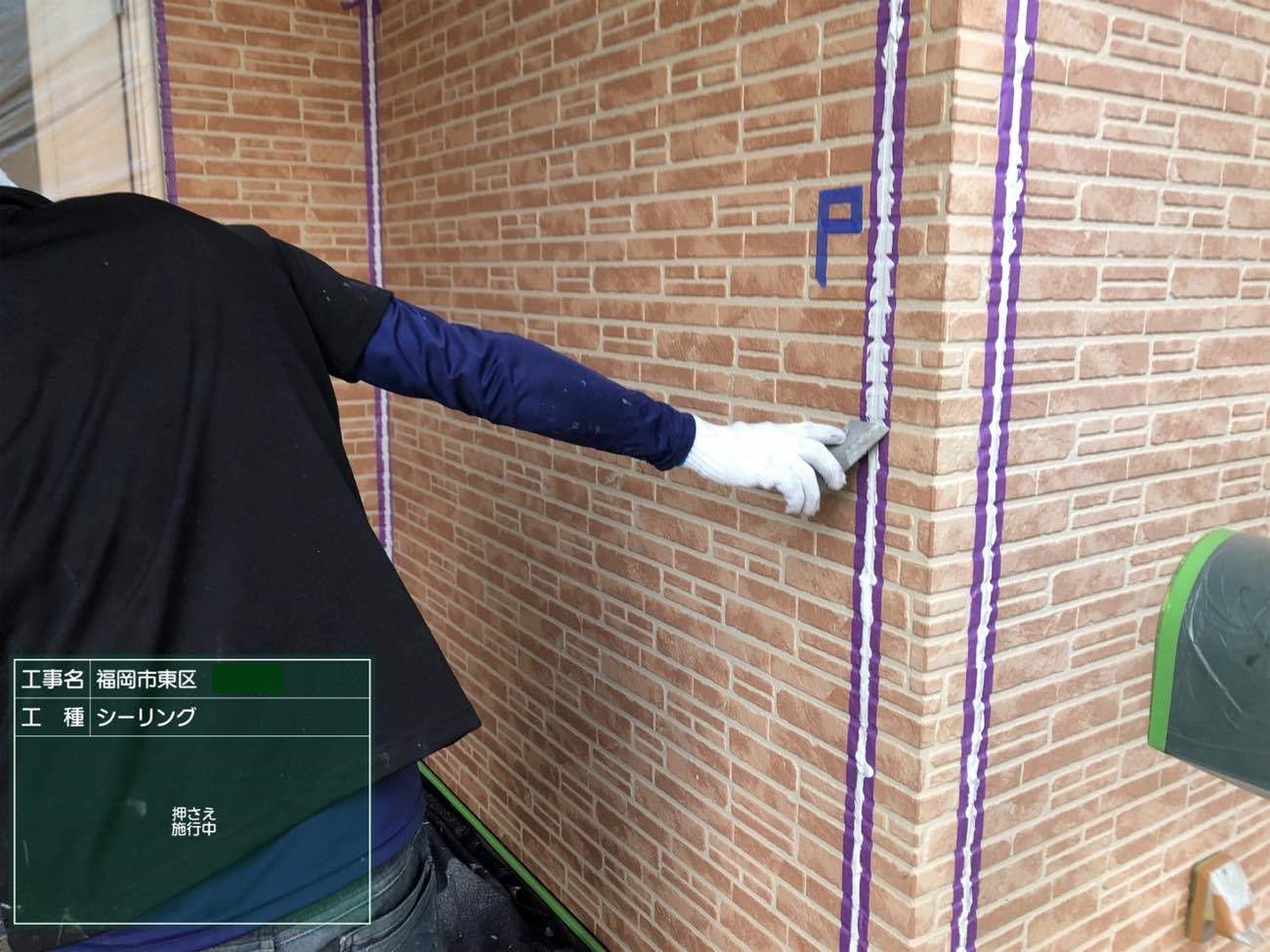 シーリング材を充填していきます。目地に沿って丁寧に充填作業を行います。